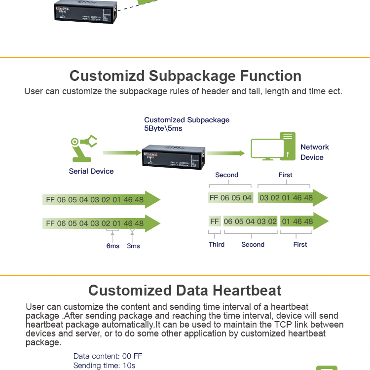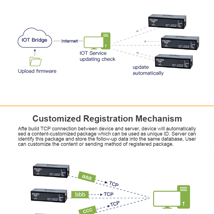 Блок Elfin-EW11A является полным решением для последовательного порта устройства, подключаемого к сети. Это мощное устройство поддерживает надежную и проверенную операционную систему, хранящуюся во флэш-памяти, встроенный веб-сервер, полный стек протоколов TCP/IP и шифрование на основе стандартов (AES).