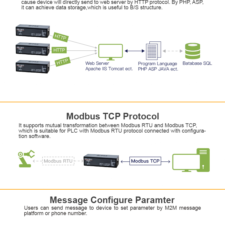 • Поддержка TCP/UDP/Telnet /Modbus TCP протокол