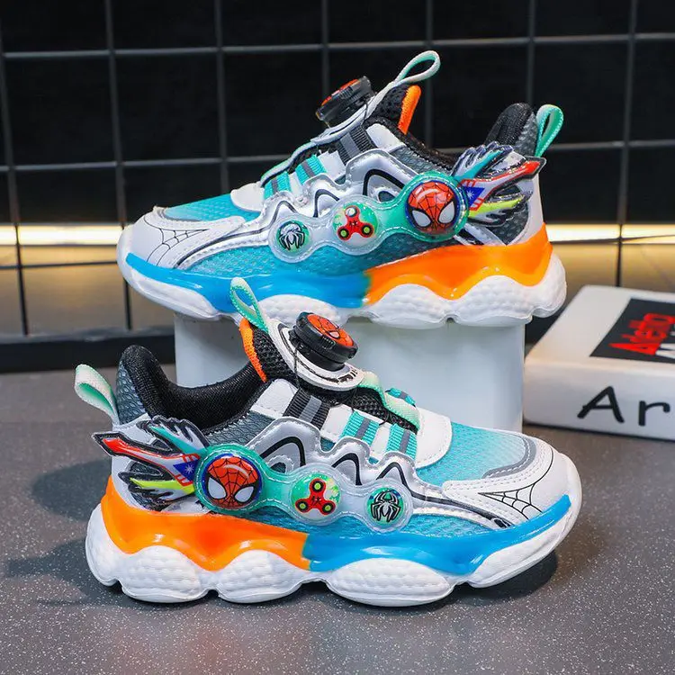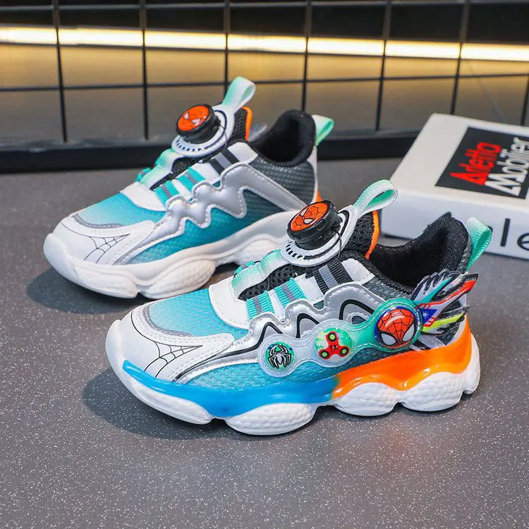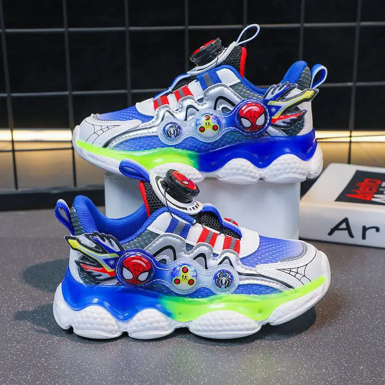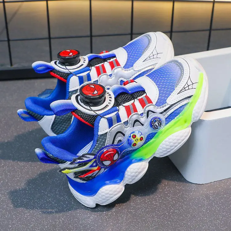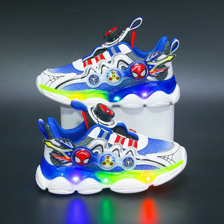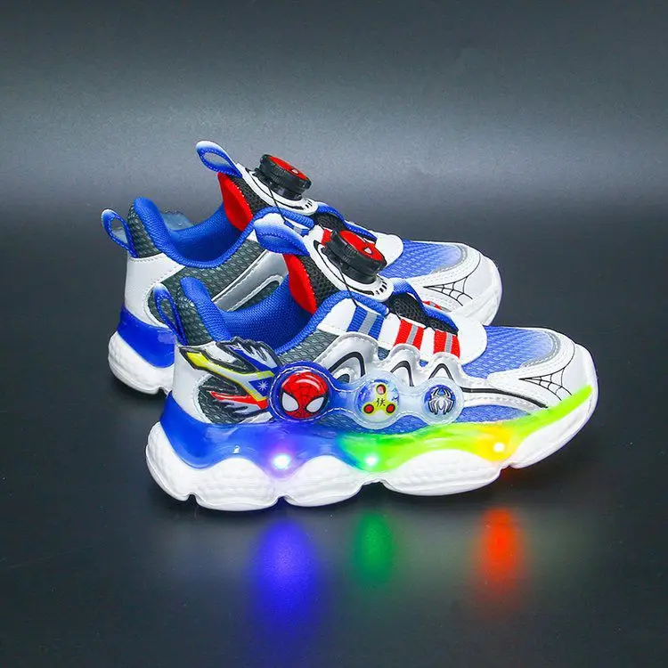 Повседневная обувь для мальчиков Disney, детская обувь со светодиодной подсветкой, дышащая Спортивная синяя обувь с пуговицами и мультяшным рисунком, кроссовки, размер 26-35