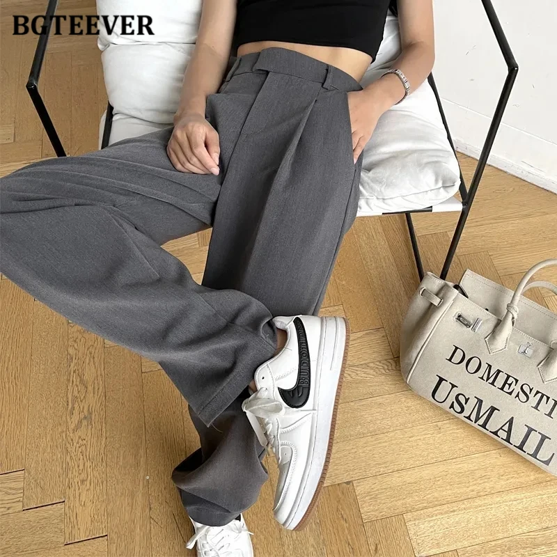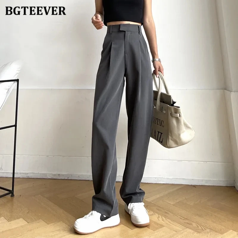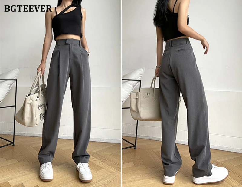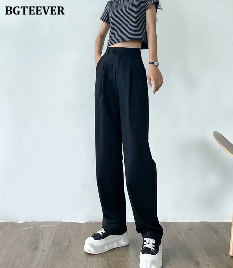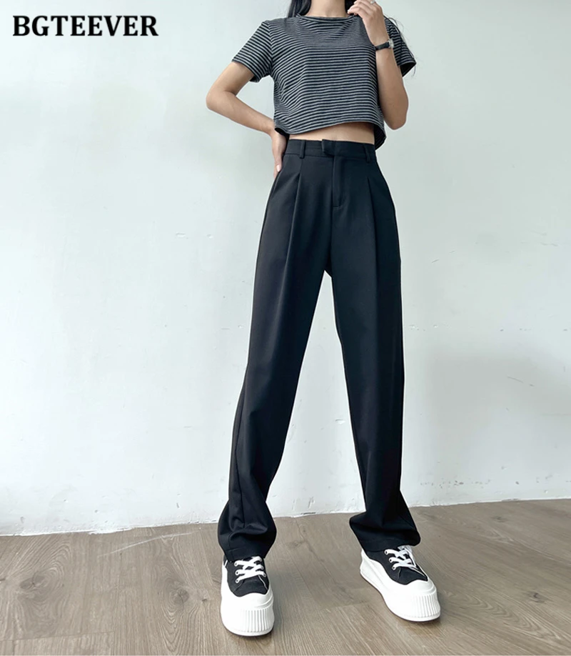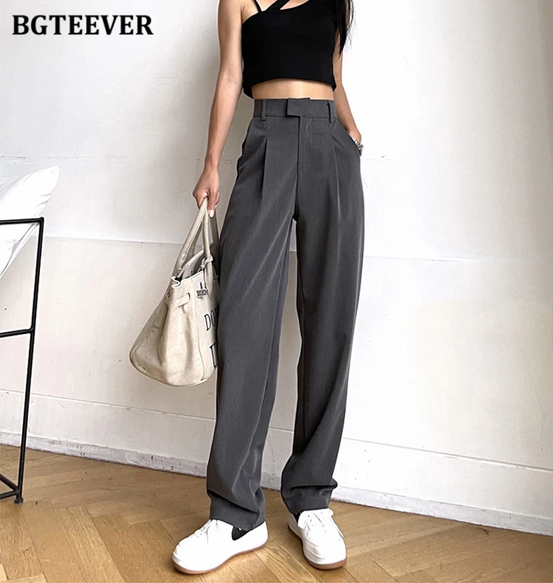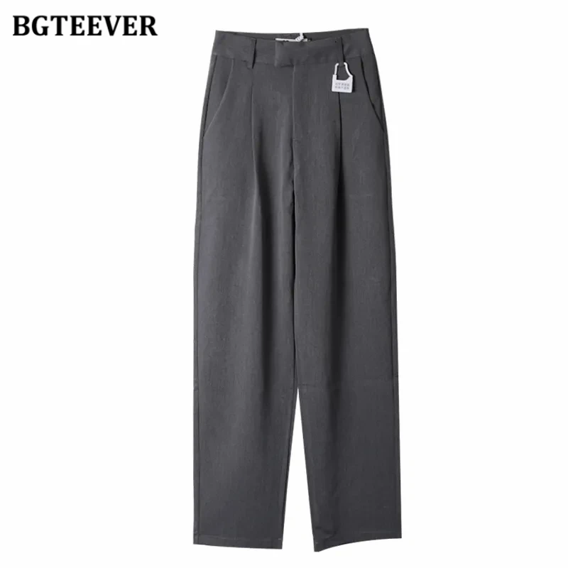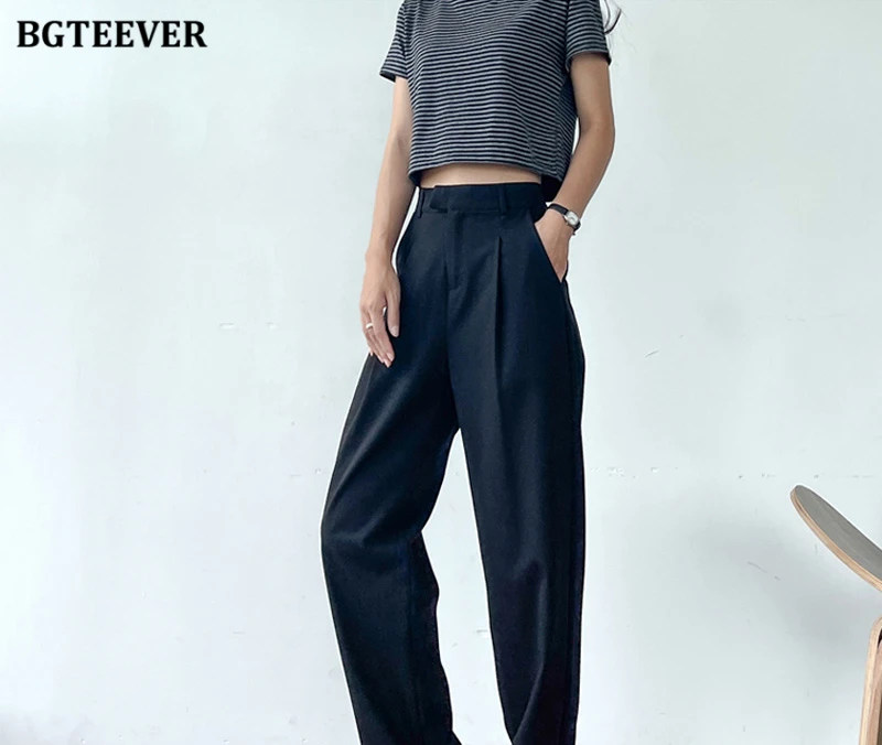 Повседневные свободные прямые женские брюки BGTEEVER с карманами, повседневные женские длинные брюки с высокой талией 2022