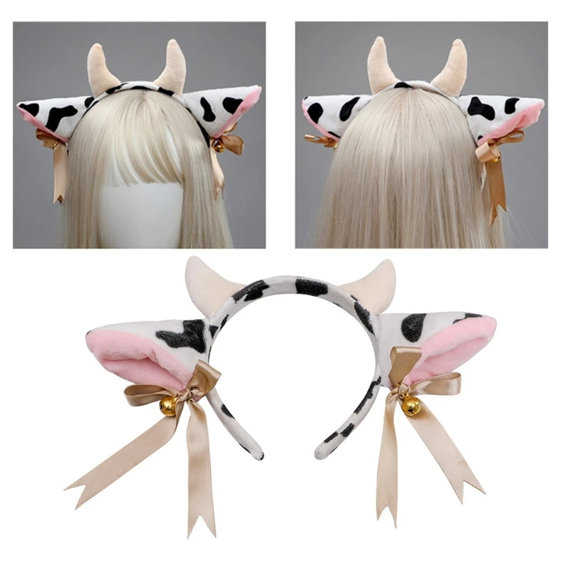 Повязка на голову с плюшевыми коровьими ушками, с маленькими колокольчиками, ленточным бантом, обруч для волос в стиле аниме Лолиты, милый костюм для косплея в виде животных