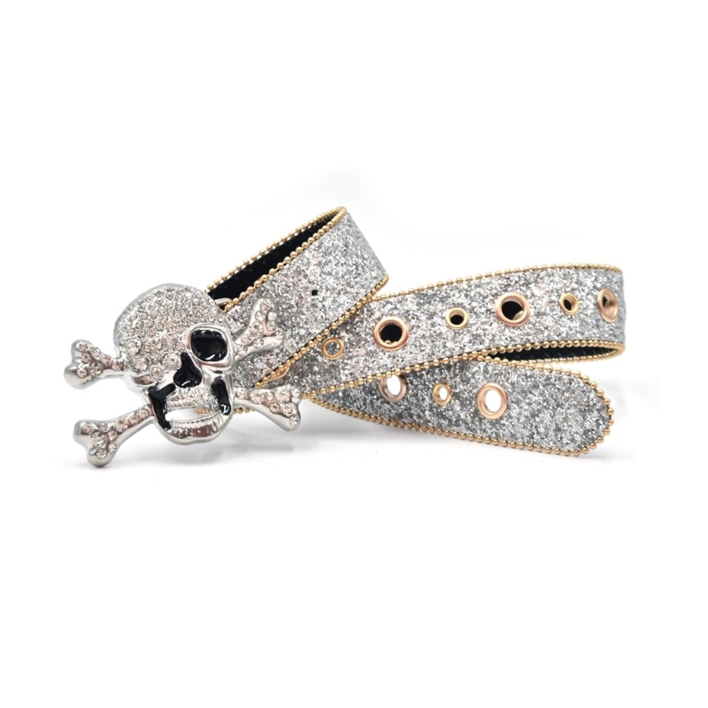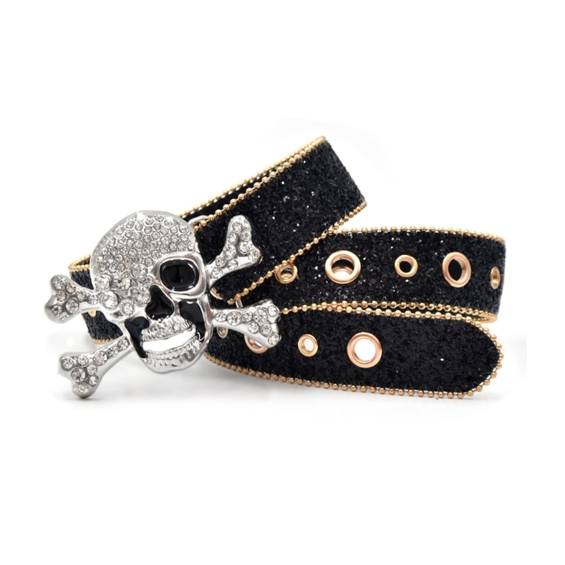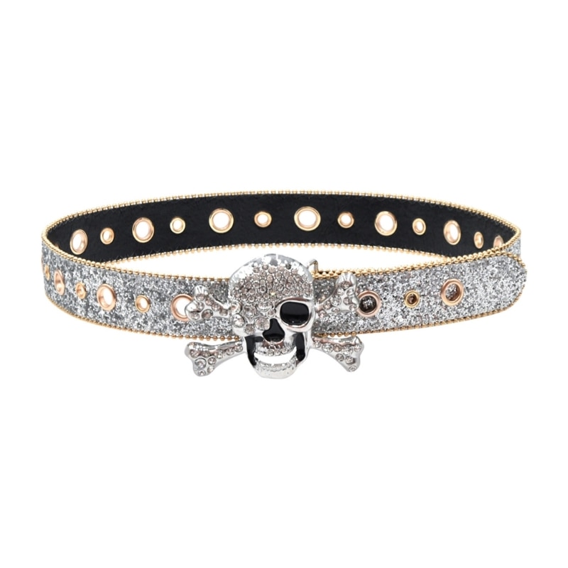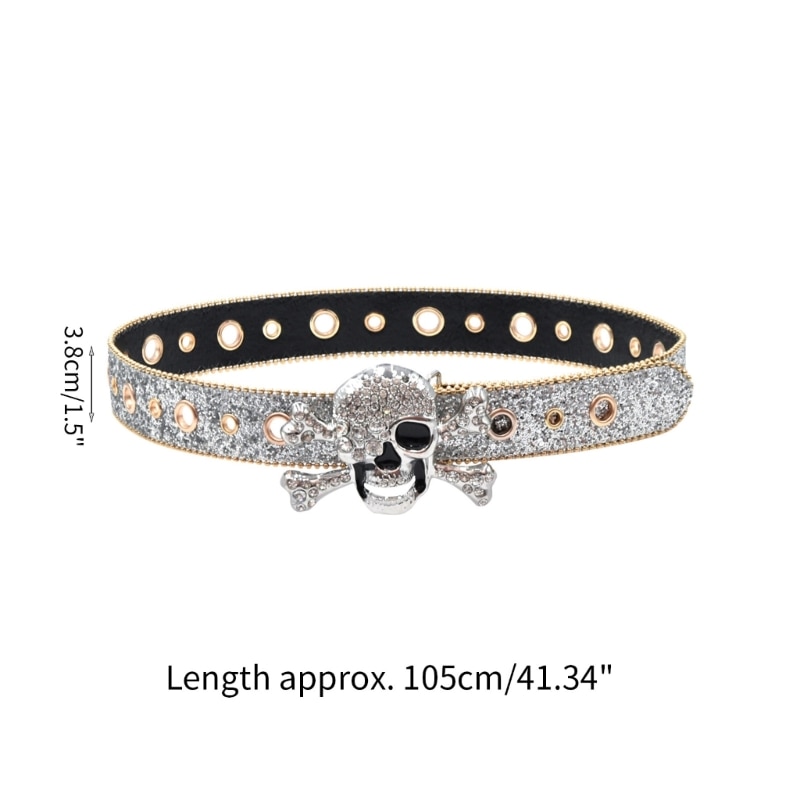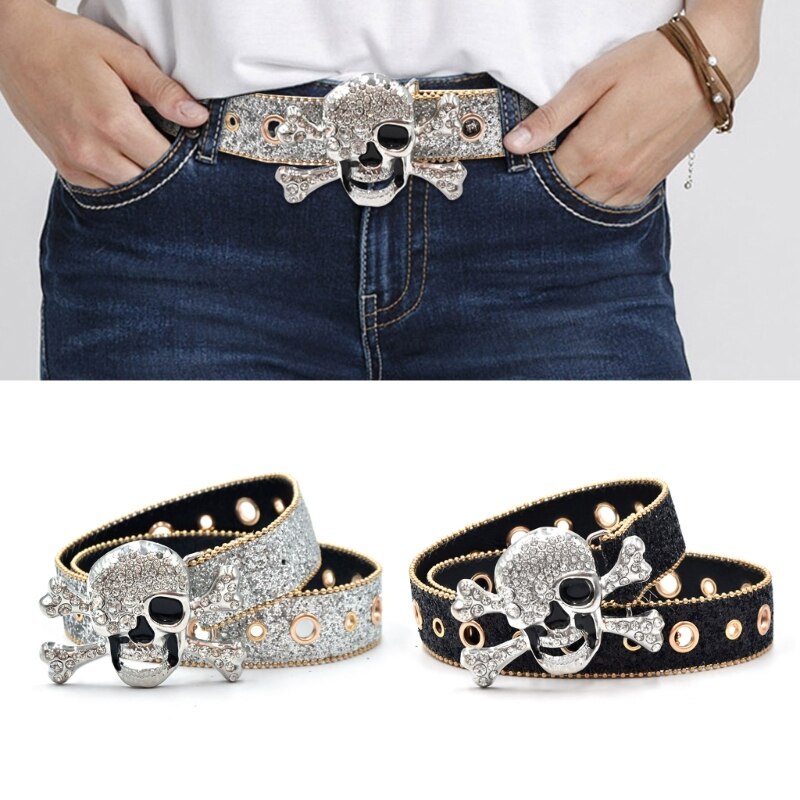 Пояс с пряжкой в виде черепа для взрослых, роскошный модный широкий пояс в стиле панк, с блестками