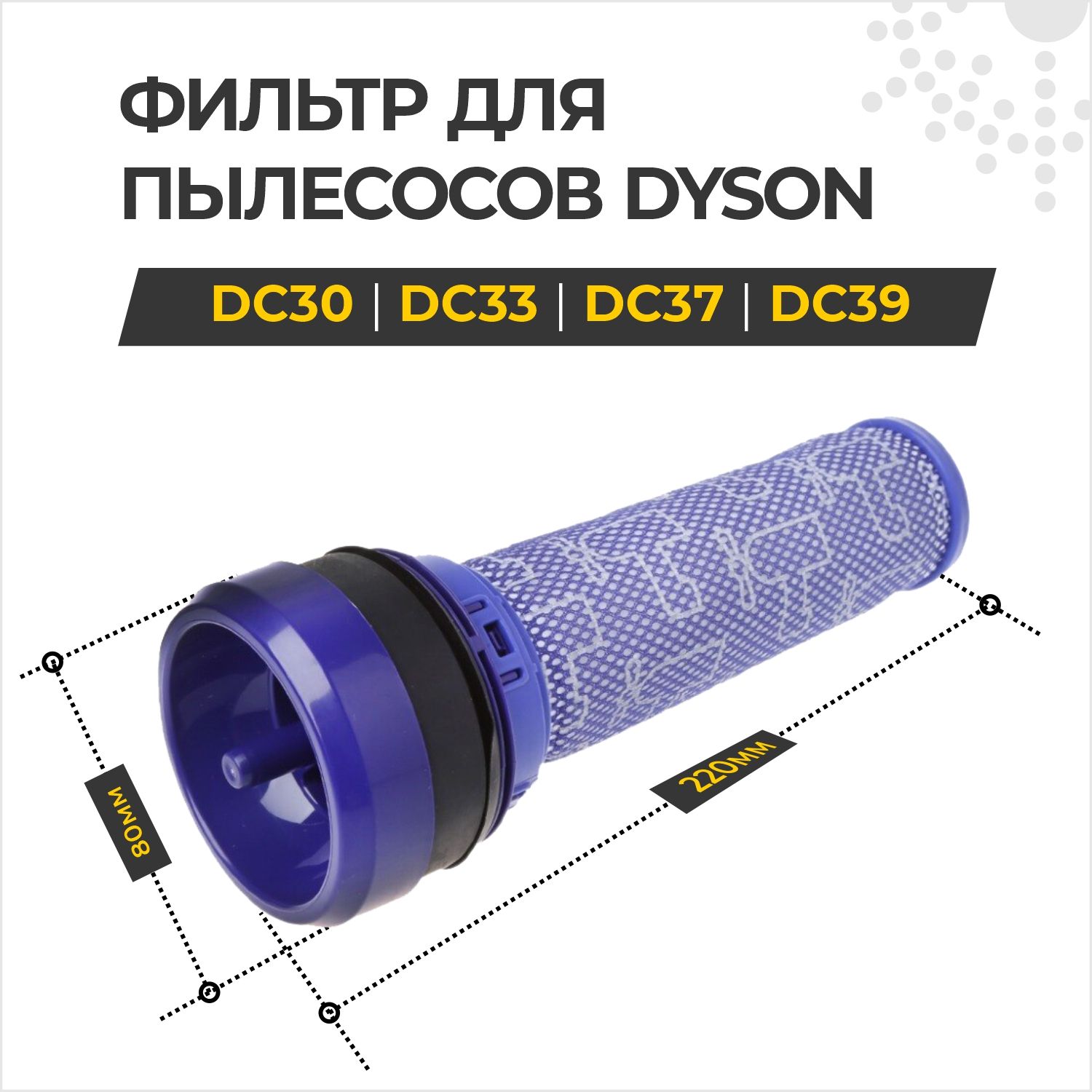 Описание: Моющийся предмоторный фильтр для пылесоса Dyson DC37, DC30, DC33, DC39, 923413-01.