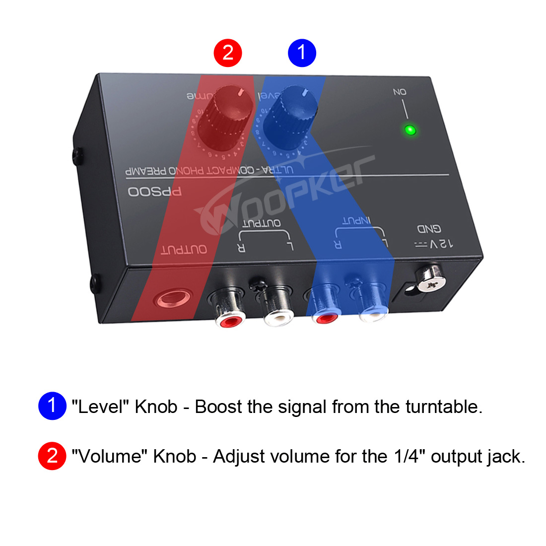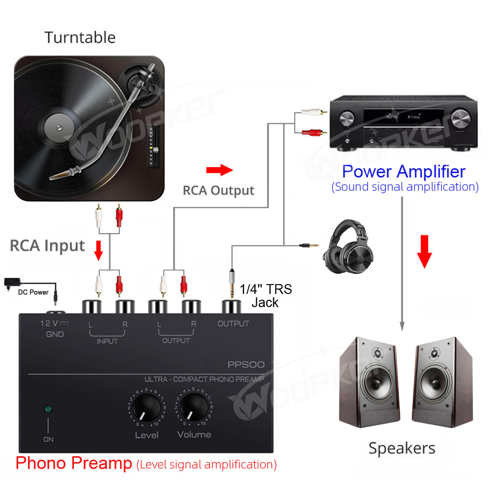 Предусилитель Woopker Phono PP500, предусилитель с басами, с регулировкой громкости, предусилитель для проигрывателя