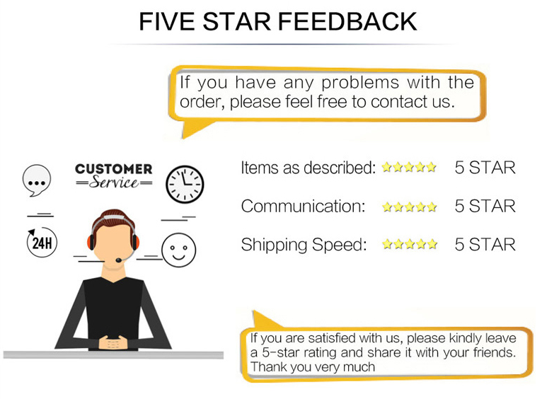 Ваш отзыв чрезвычайно важен для развития нашего бизнеса, мы искренне приглашаем вас оставить нам положительный отзыв с пятью звездами, основываясь на вашем удовлетворении нашими товарами и услугами. Планируете дать нам нейтральный/отрицательный отзыв из-за вашего плохого опыта покупки у нас, пожалуйста, свяжитесь с нами в любое время, чтобы прояснить ваше недовольство и решить проблему.