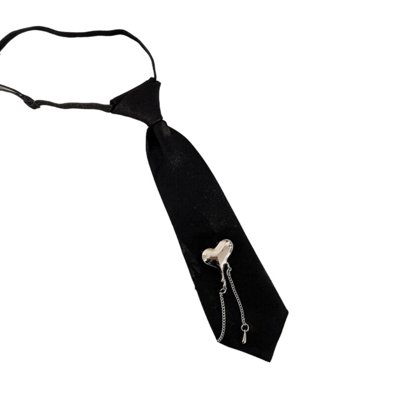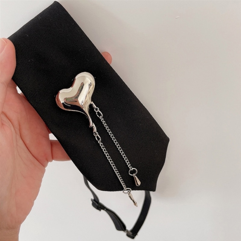 Готический панк, винтажный студенческий стиль, милые декоративные сердечки и металлические кисточки, черные галстуки на шее для женщин и мужчин.