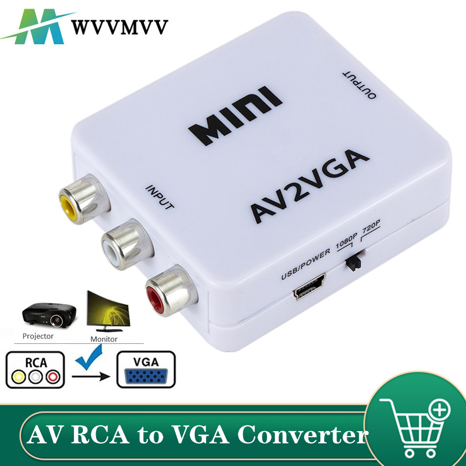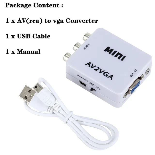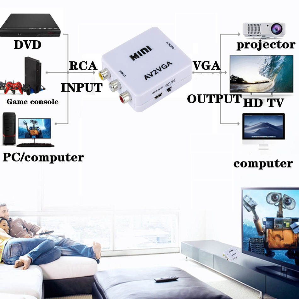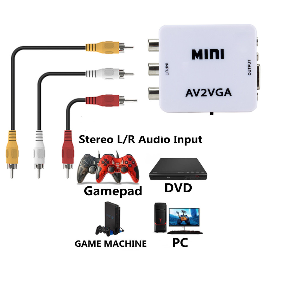 Преобразователь видео Mini HD AV2VGA, преобразователь AV RCA CVBS для VGA, видеопреобразователь с 3,5 мм преобразователем аудио в ПК HDTV