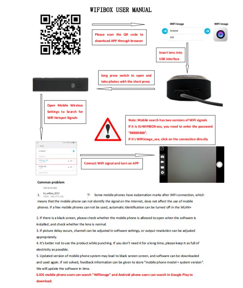 4. С бесплатным приложением, «изображение wifi», можно использовать его/ее iPhone, iPad, устройства Android для просмотра изображений в реальном времени, фотографирования и записи видео.
