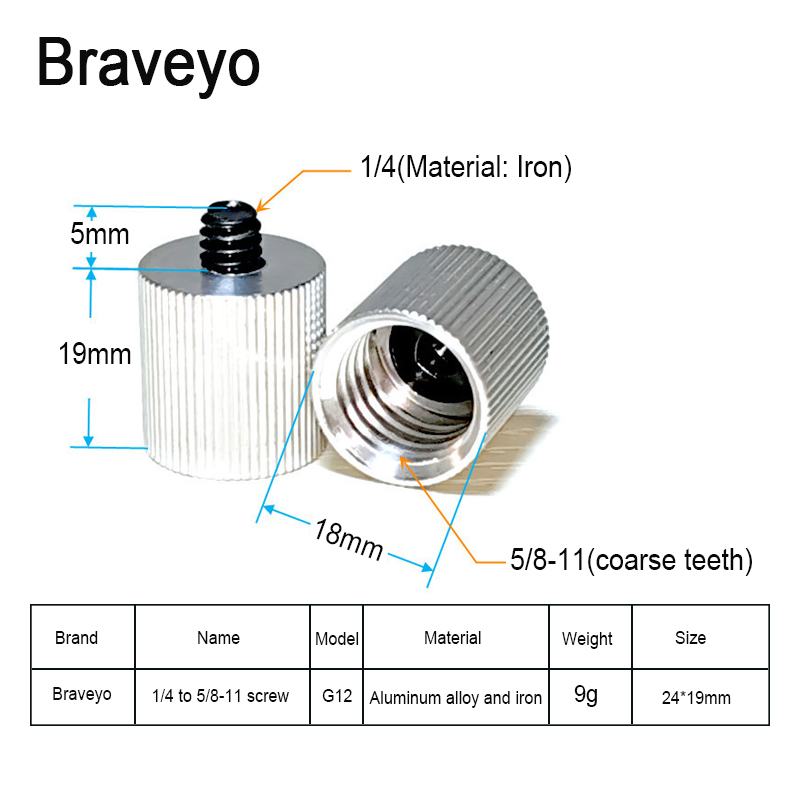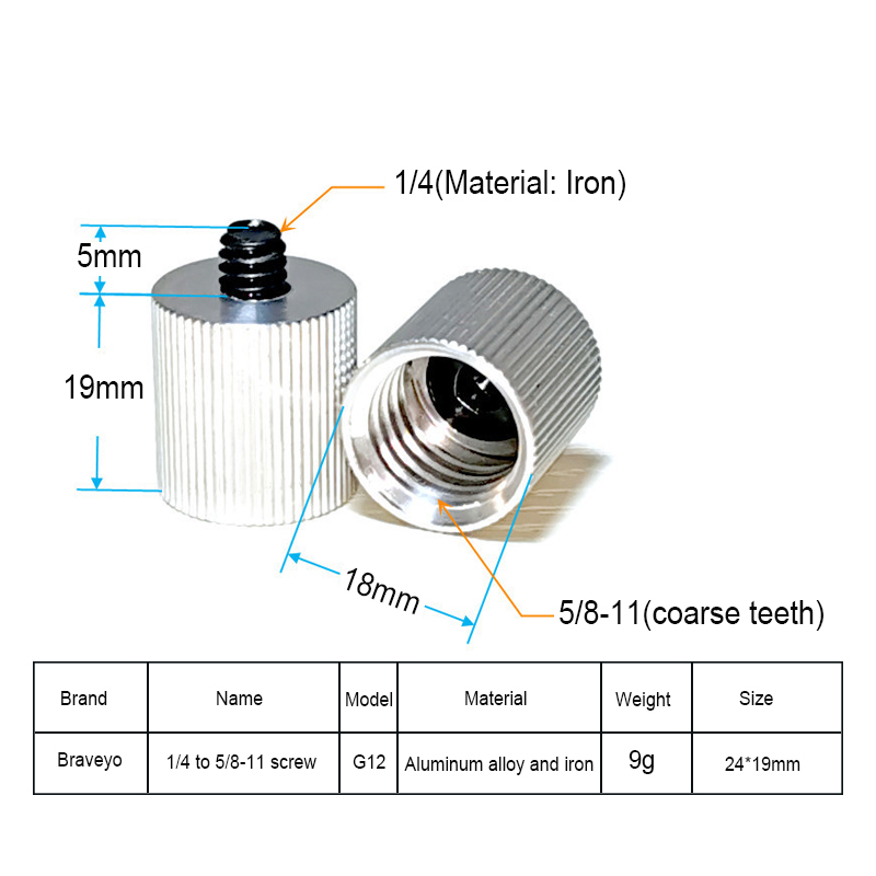 5/8 to 1/4 Infrared Laser Level Adapter Tripod Thread Adapter Camera Tripod Ballhead Conversion Screw Photography Accessories