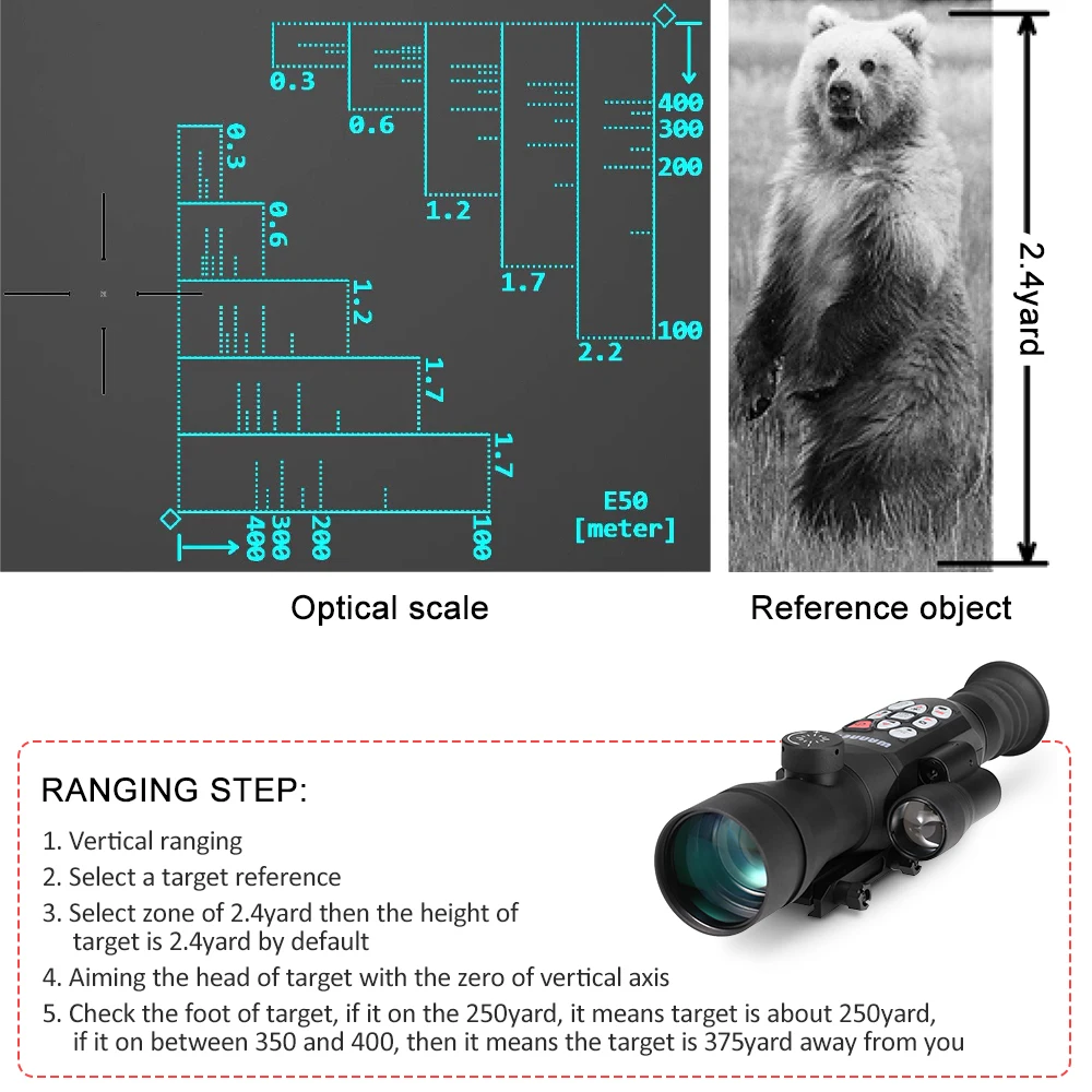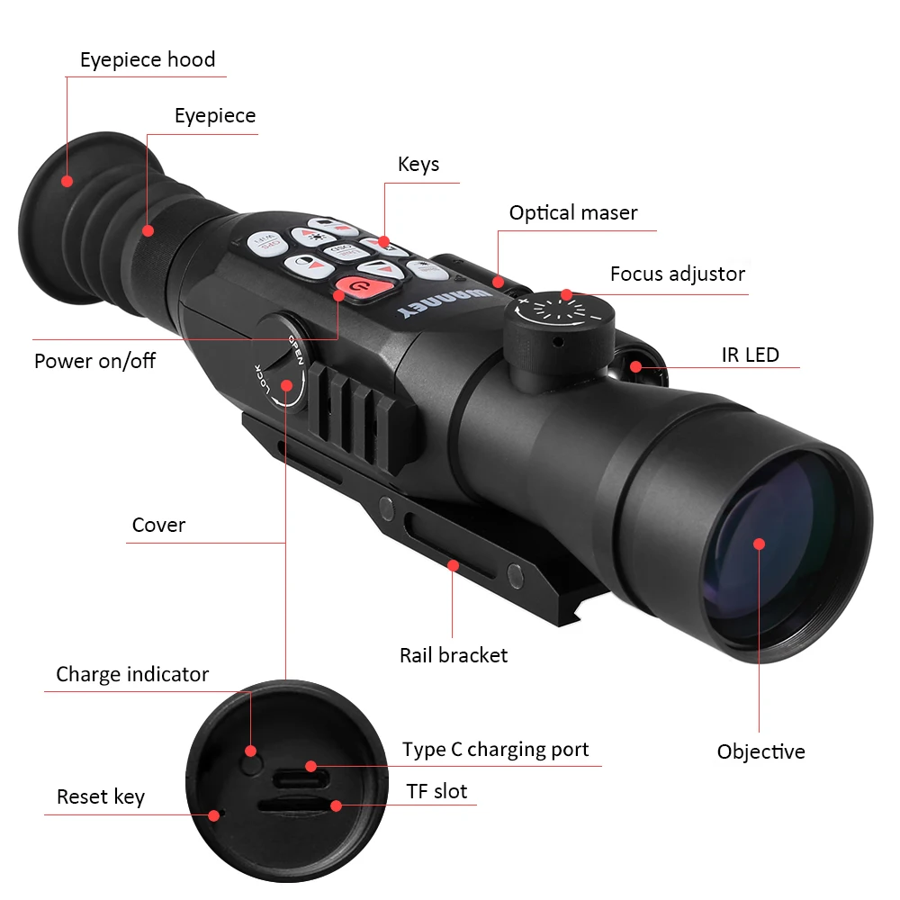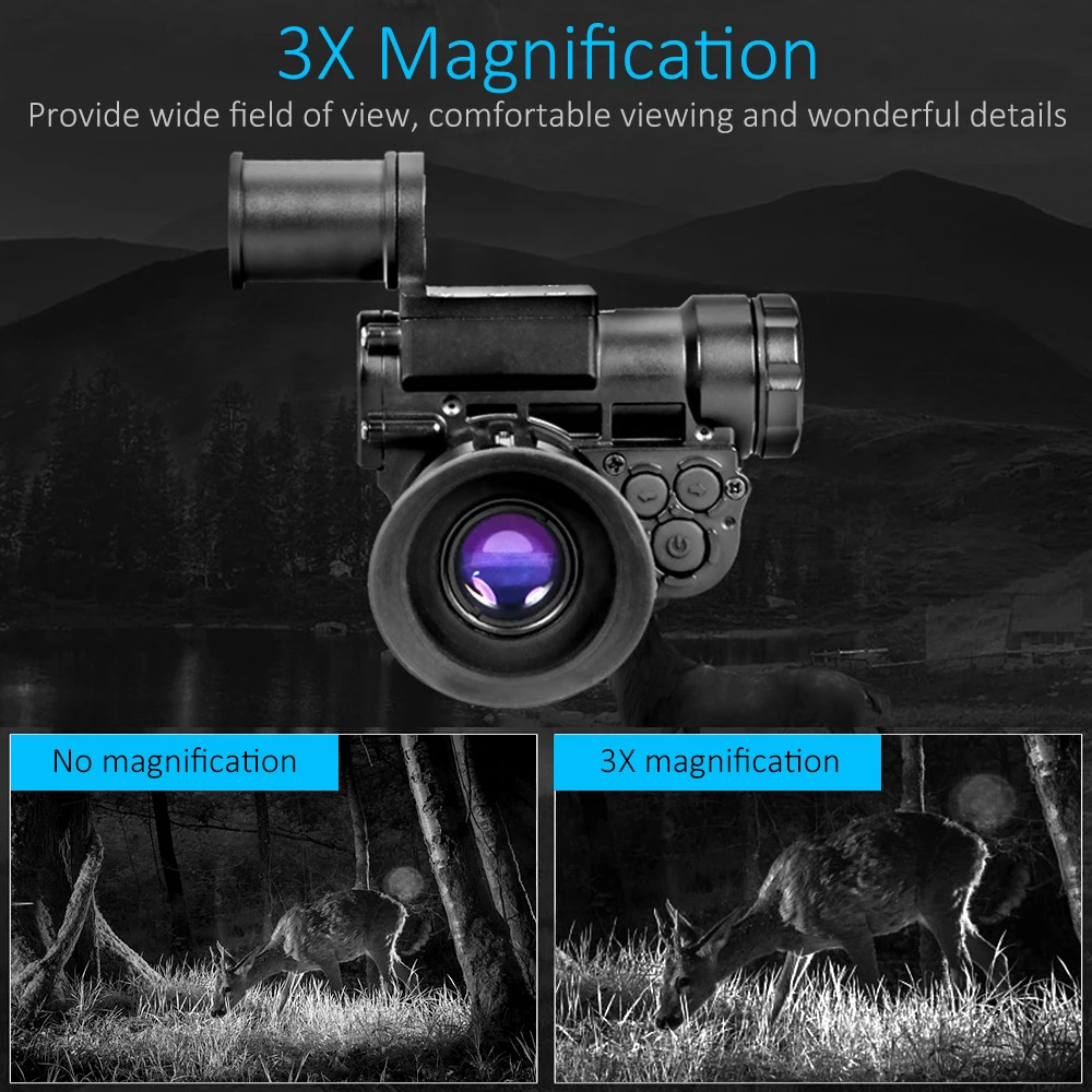 Дальнее видимое расстояние: 2x цифровой зум и 3.9x оптическое усиление, с 940nm невидимой ИК-подсветкой, видимое расстояние может быть более 300 ярдов в полной темноте.