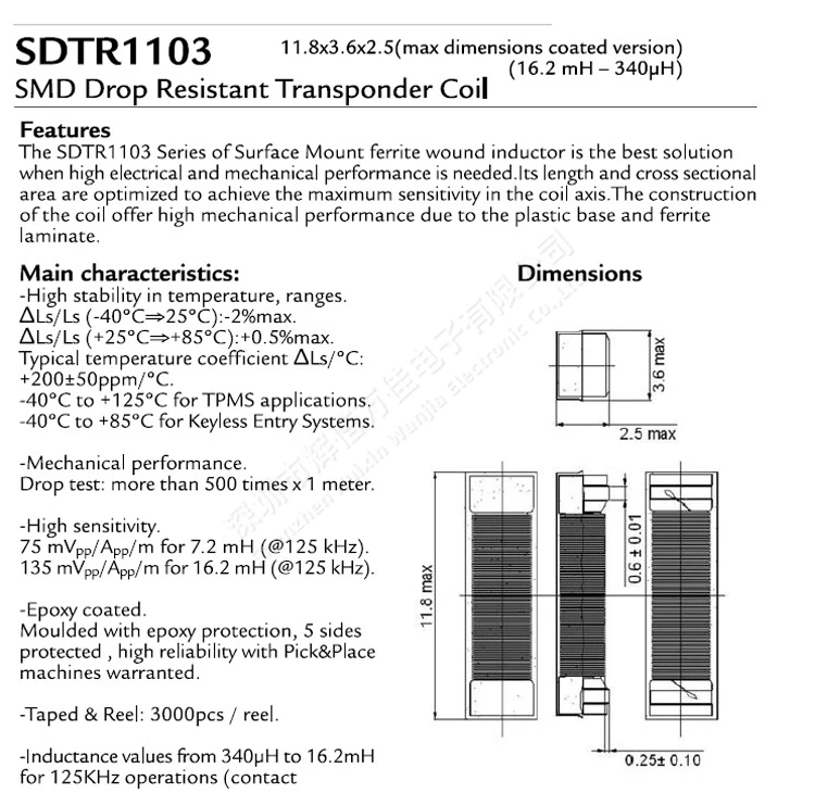 Приемная антенна индуктивности автомобильного ключа, 2,38 мгн, 125 кГц, 10 шт