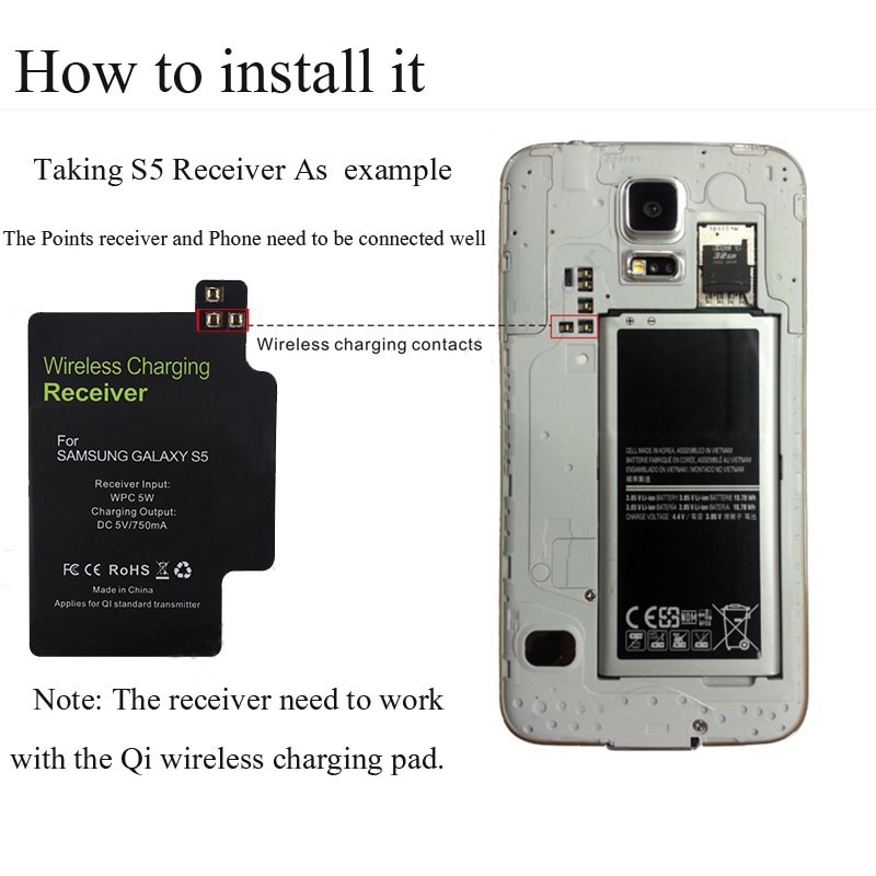 • 1 беспроводной приемник зарядного устройства Qi для Samsung Galaxy Note 4 S5 S4 с высококачественной катушкой применяется для зарядного устройства Qi.
