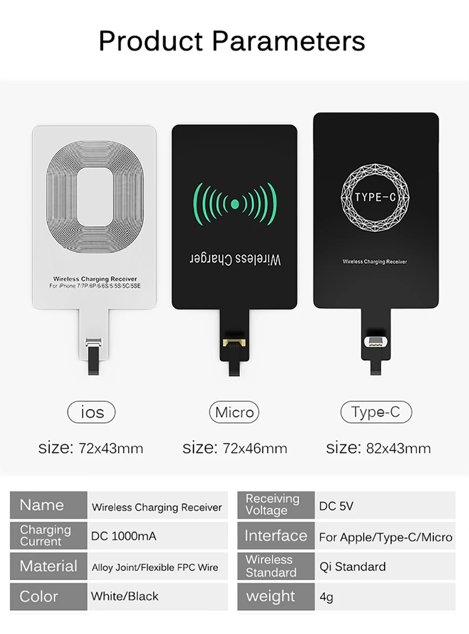 Приемник беспроводного зарядного устройства с поддержкой быстрой беспроводной зарядки с MicroUSB типа C для телефона Android