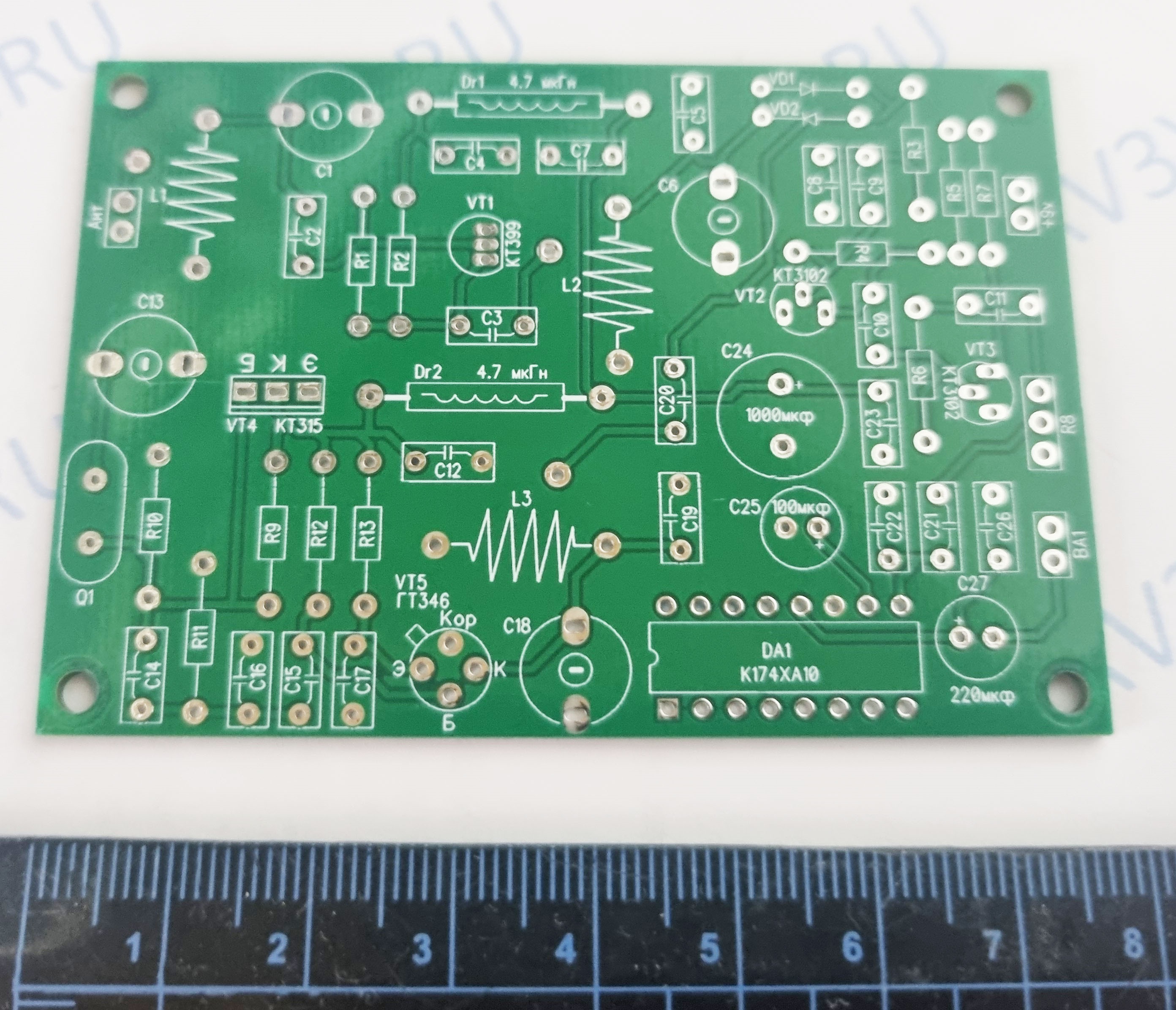 Состав набора: печатная плата, все радиоэлементы необходимые для сборки платы.