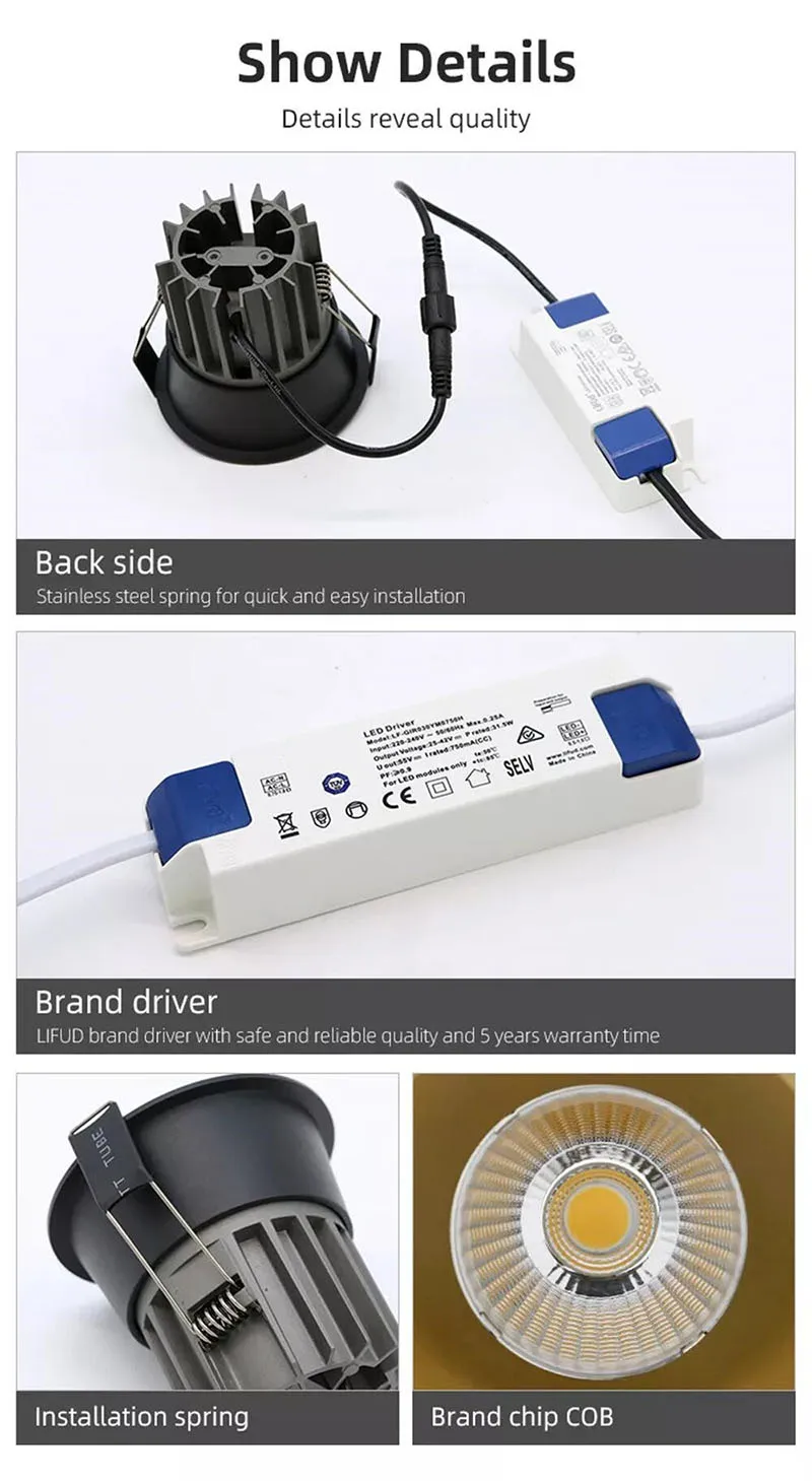• Угол луча:20 ° 40 °(5W7W10W);24 ° 36 °(12W15W18W20W); Доставка по умолчанию 40 °/36 °