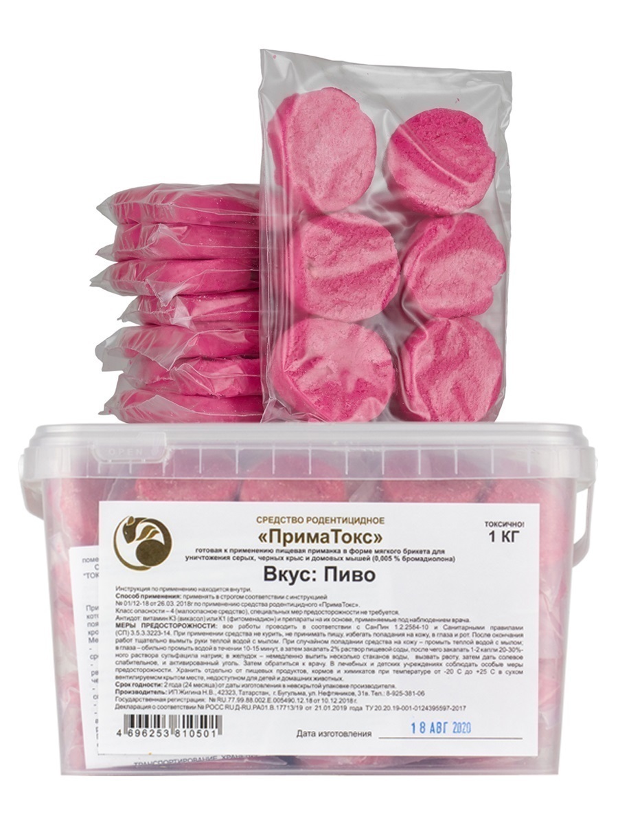 ПримаТокс средство от грызунов, крыс и мышей (мягкие брикеты) (пиво), 1 кг