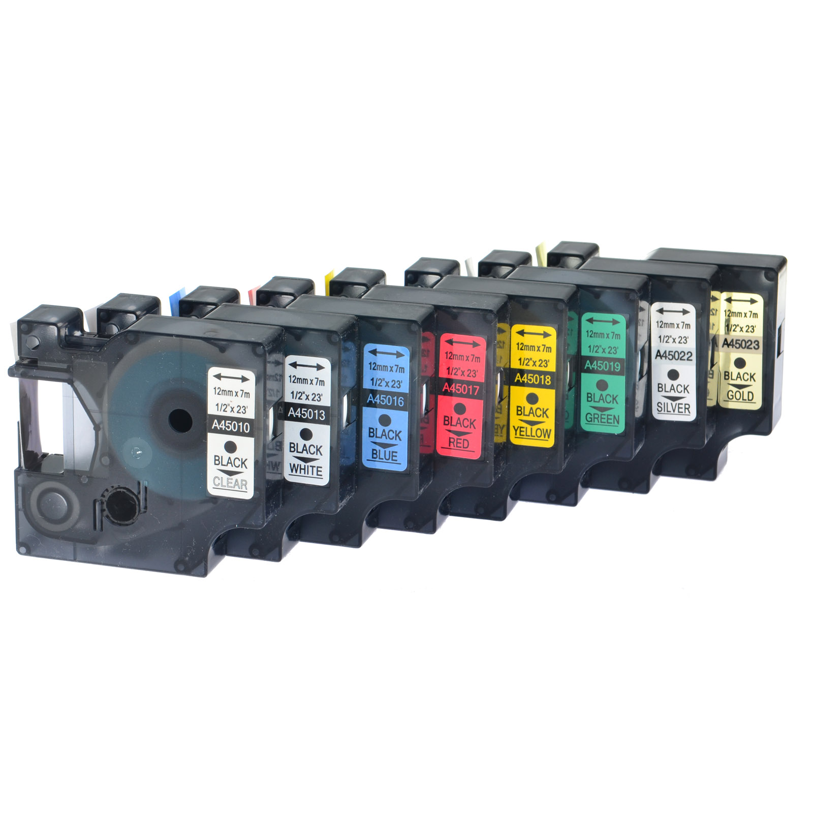 Принт для Dymo D1 45010 45013, черный, красный, синий, желтый, зеленый, 12 мм лента для маркировки, 8 шт. в наборе, прозрачный, 45018 45020