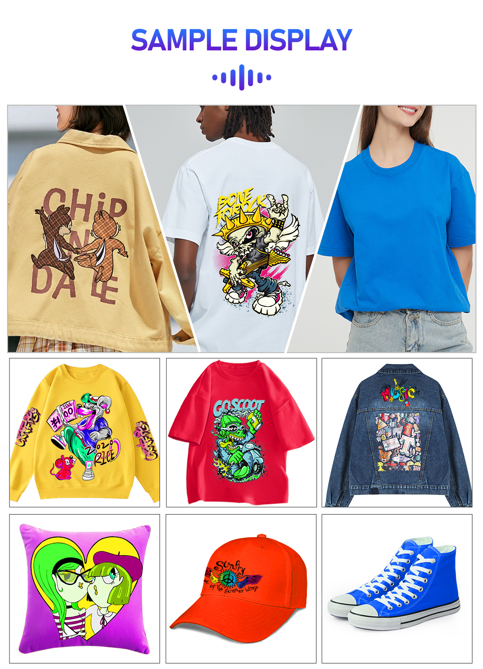 Его можно наносить на хлопок, полиэстер, кожу, футболки, джинсы, головные уборы, сумки, подушки, обувь, носки, кепки, изделия ручной работы, толстовки, подушки и многие другие ткани.