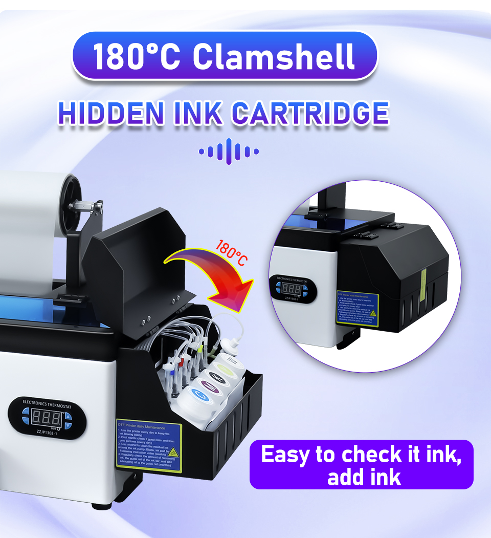 Новейший Трансферный Принтер R1390 DTF имеет систему перемешивания белых чернил и циркуляции белых чернил, которая предотвращает осадок, вызывающий блокировку сопла. И система предварительного нагрева, чтобы сделать печать более равномерной и красивой.