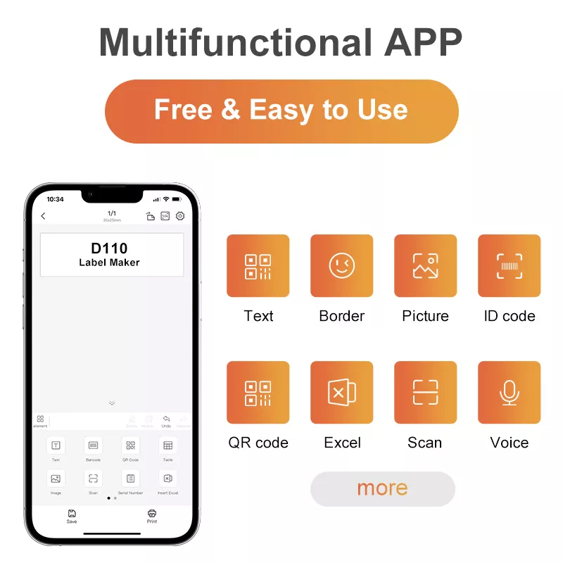 Принтер для этикеток D110 Niimbot, беспроводной принтер для этикеток, несколько шаблонов в комплекте, для телефона, офиса и дома