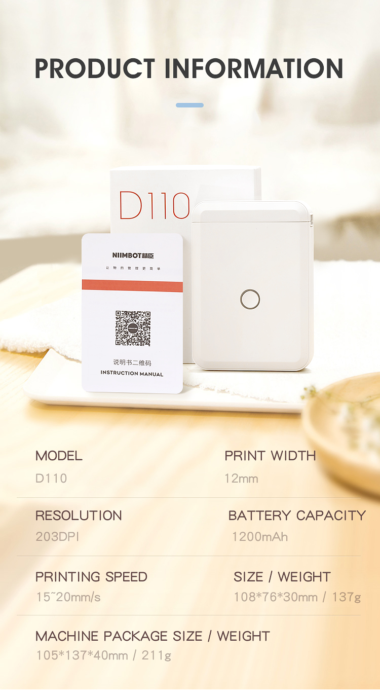 Niimbot D110 Mini Portable Pocket Label Printer No Ink Label Maker for Mobile Phone Home Office Use Print With Name