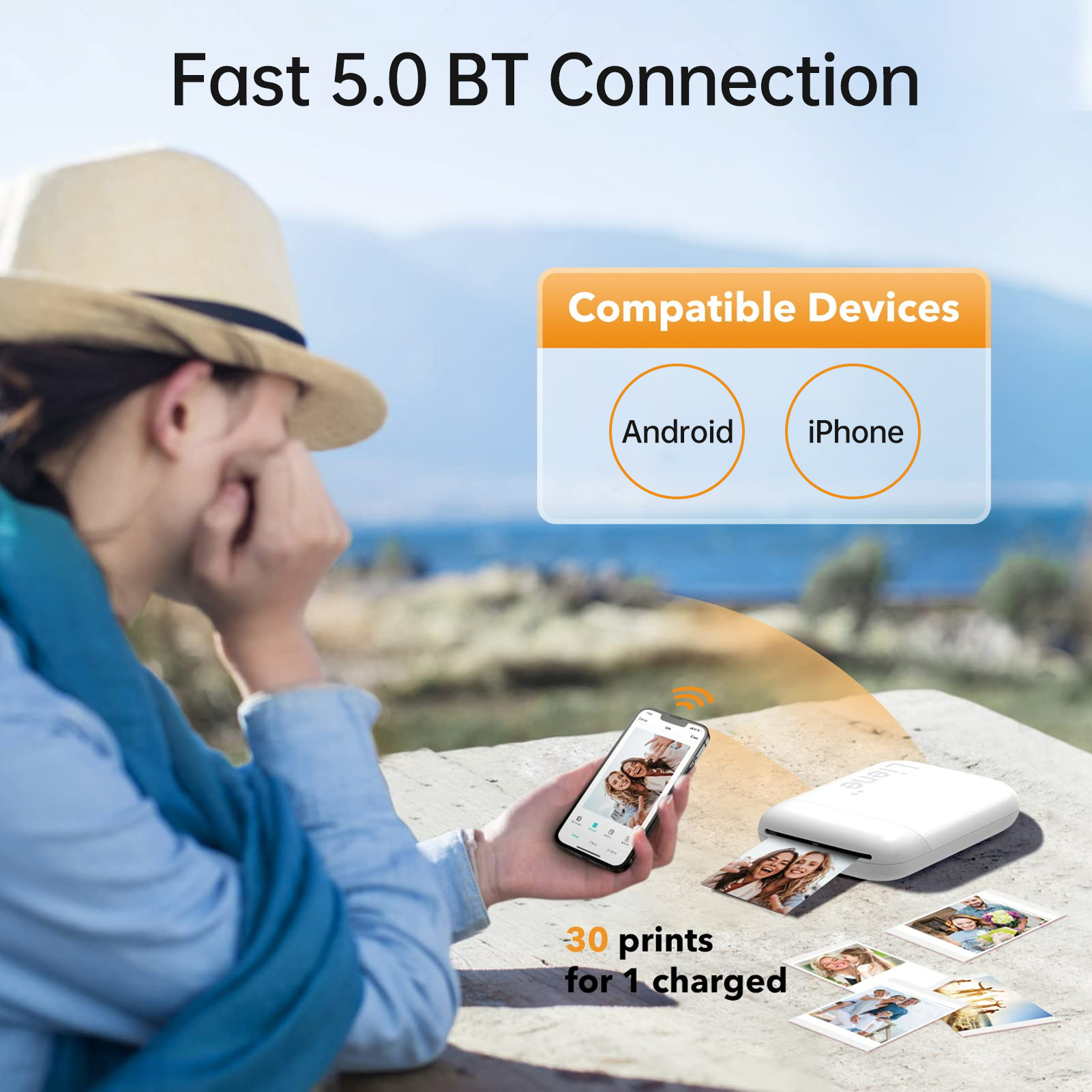 [Простая печать через BT 5,0] Быстрая печать при подключении к BT 5,0. Более стабильный сигнал и более дальнее соединение, когда вы находитесь на улице или в поездке. Совместимость с устройствами iOS и Android. Наденьте крышку, чтобы вставить фотобумага. Подключите мини-принтер и Распечатайте незабываемые моменты одним щелчком мыши!