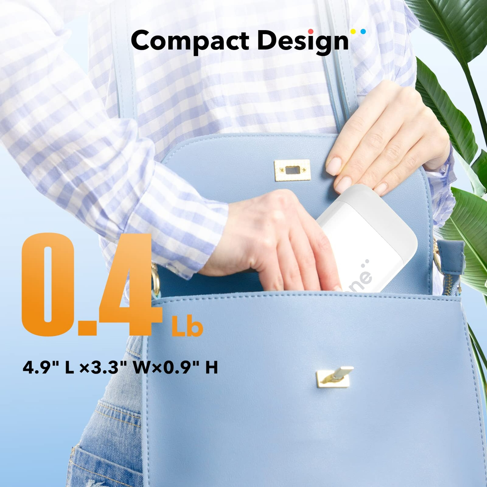 [Портативный дизайн] Легкий вес 187 г позволяет носить фотопринтер для смартфонов в сумке и не занимает слишком много места. С портом зарядки типа C, можно распечатать 30 фотографий после одной полной зарядки. Поставляется с листами фотобумаги 50 шт. С экономией 70% на лист. Это для любителей фотопечати.