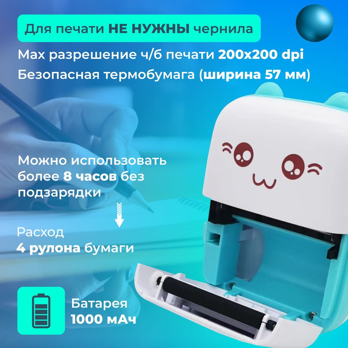 Описание: Портативный принтер для быстрой печати, для печати фотографий, изображений, заметок, чеков или любой другой информации. Нужен только телефон или ноутбук - подключается по юсб или блютуз соединению. Карманный принтер мини формата - это незаменимый помощник для мгновенной печати фотографий, чеков, шпаргалок, стикеров, штрихкодов, термоэтикеток и наклеек. Необычное устройство имеет прочный пластиковый корпус, быстро и легко осуществляет черно-белую (монохромную) печать с разрешением 200 × 200 dpi. Эта вещь несомненно понравится и детям, и взрослым, и подросткам.