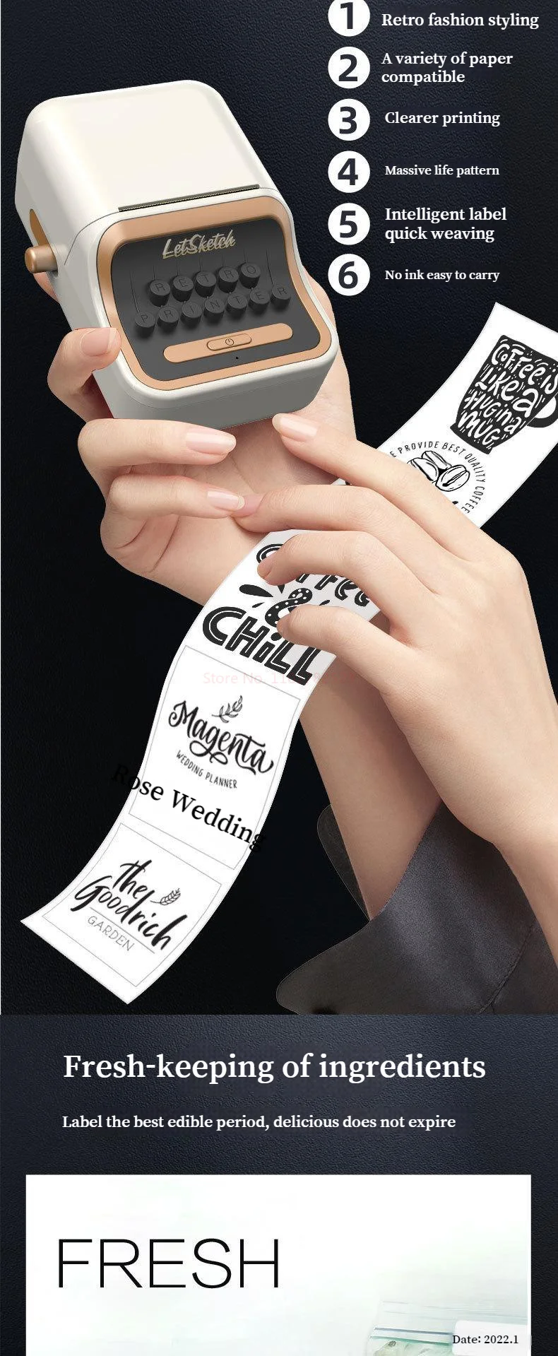 принтер для нанесения наклеек, компактный, термочувствительный, Bluetooth