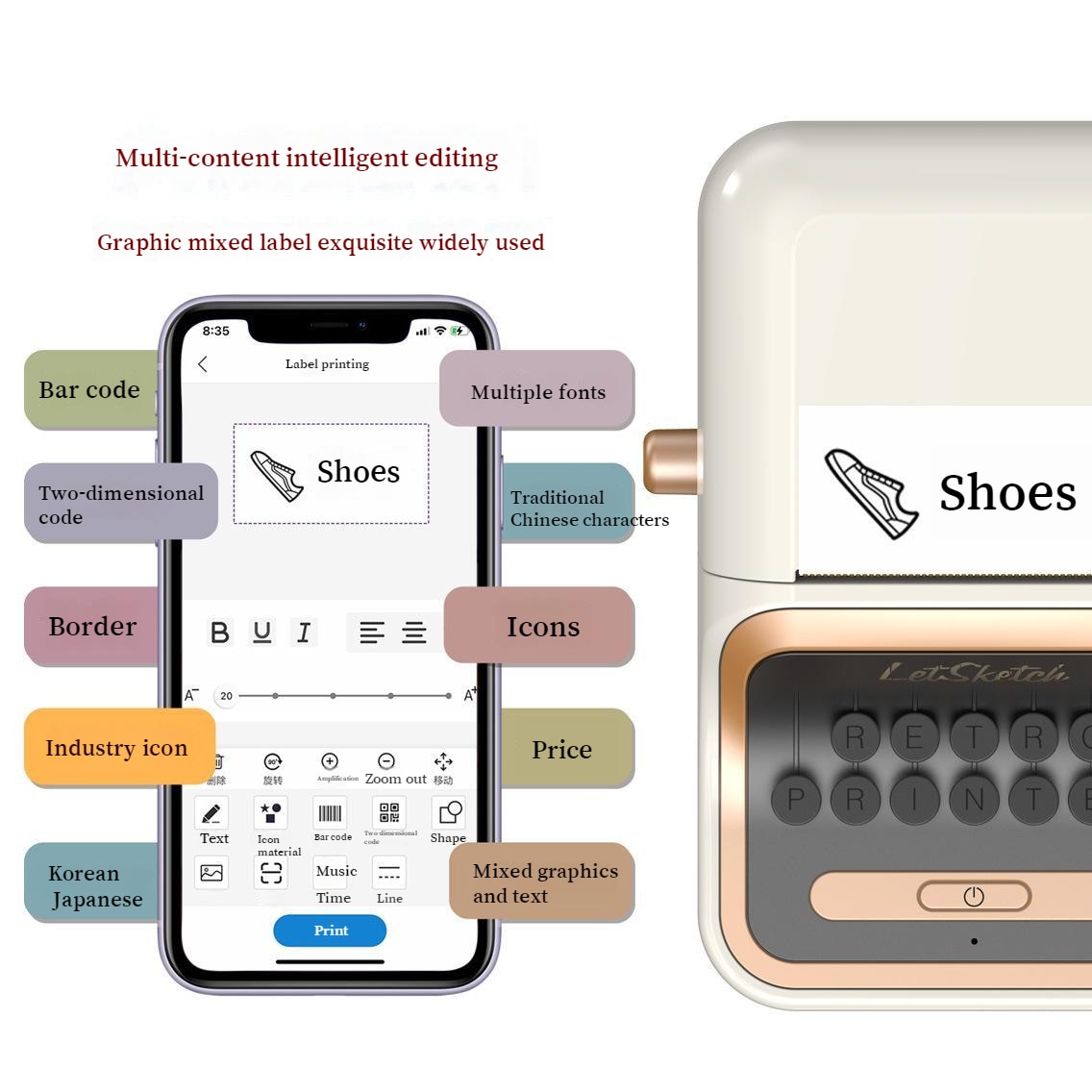 Этикетировочная машина Неправильный титульный принтер Удобный маленький умный Bluetooth Термочувствительный принтер для заметок Печать небольших этикеток
