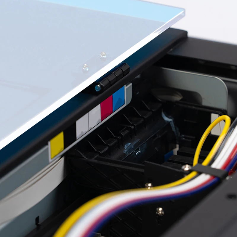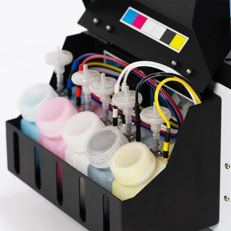 Используя циркуляцию белых чернил, машина автоматически перемешивает белые чернила каждые 30 минут, что может эффективно предотвратить засорение печатающей головки.