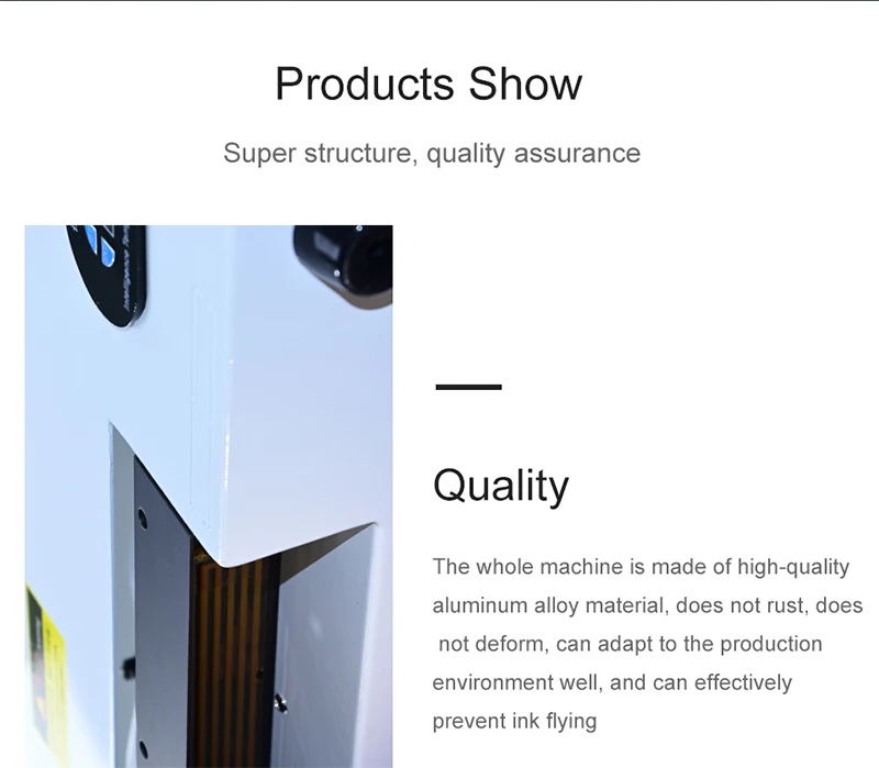 Вся машина изготовлена из высококачественного алюминиевого сплава, не ржавеет, не деформируется, хорошо адаптируется к производственной среде и может эффективно предотвращать полет чернил