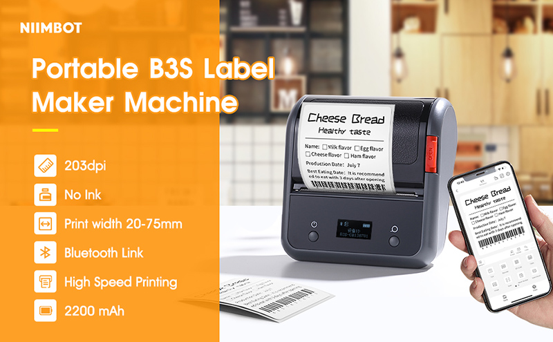 NIIMBOT B3S 3-дюймовый принтер для этикеток со штрих-кодом Беспроводной Термопринтер для наклеек Карманный производитель этикеток для одежды Ювелирные изделия Коммерческая рассылка