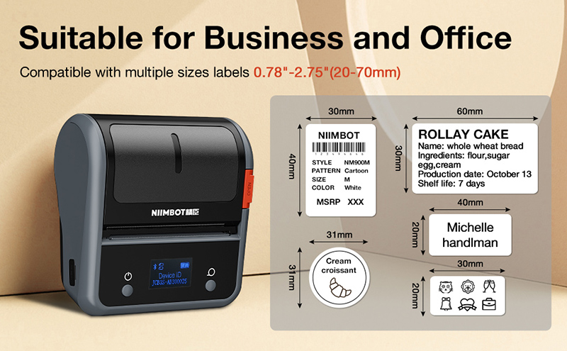 NiiMbot B21 Производитель этикеток со штрих-кодом Беспроводной Термопринтер для домашнего офиса Коммерческий карманный мини-принтер Bluetooth с GiftLabel