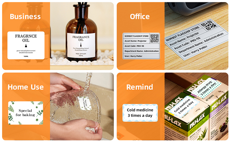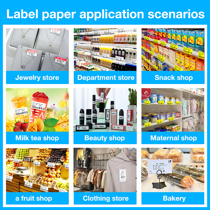 Его можно широко использовать в супермаркетах, продуктах питания, одежде, ювелирных изделии, владельцах малого бизнеса, офисных и домашних организациях. Он устойчив к воде, истиранию и не содержит бисфенола А.