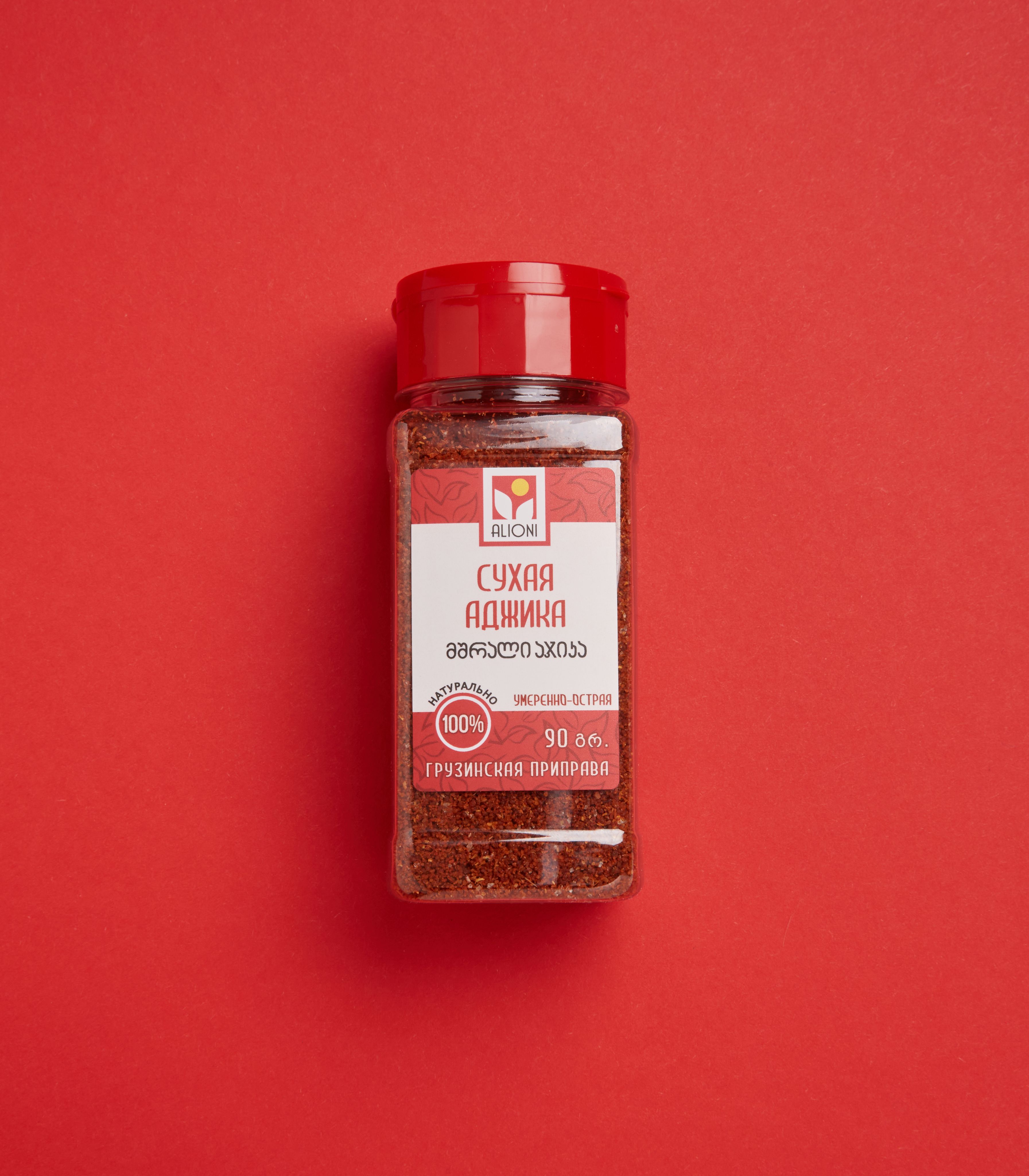 Аджика сухая умеренно-острая ALIONI, 90 г подходит для первых и вторых блюд, салатов, мясных, рыбных и овощных продуктов и мучных изделий. Рекомендуем добавлять в момент приготовления блюда или посыпать сухой аджикой уже готовое, горячее блюдо.