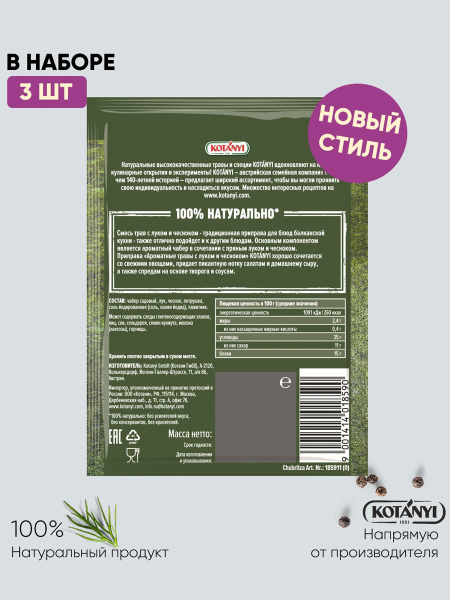 Приправа Ароматные травы с луком и чесноком KOTANYI, 20г - 3 пакетика