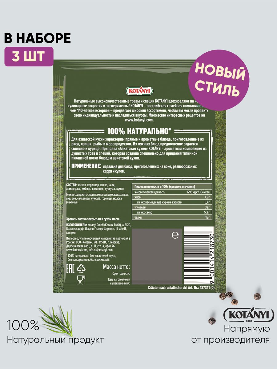 Приправа Азиатская кухня KOTANYI, 15г - 3 пакетика