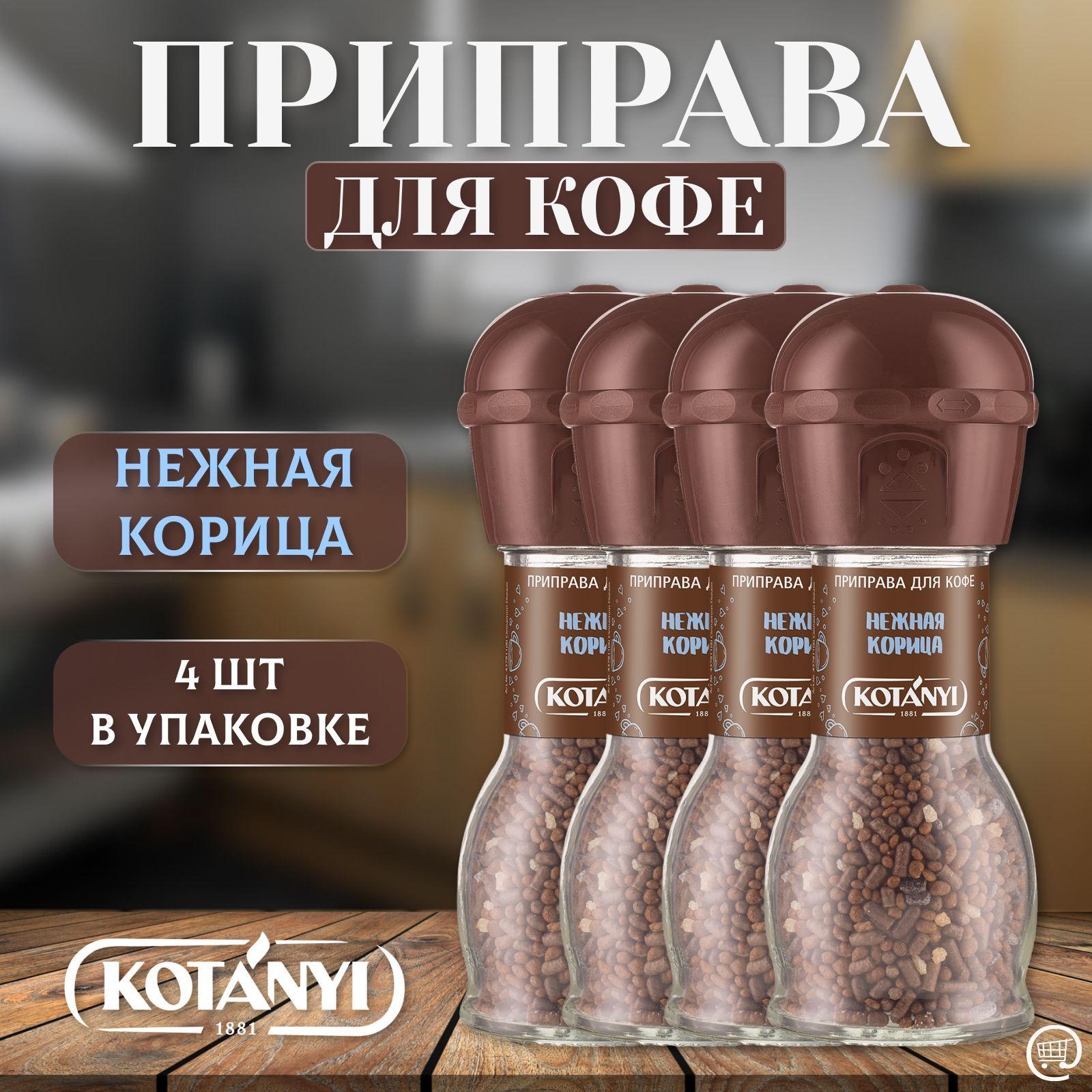Приправа для кофе Нежная корица КОТАНИ 4 шт. - 70 гр., KOTANYI, мельница, стекло.