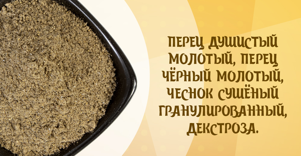 перец молотый черный, декстроза, чеснок сушеный гранулированный, перец душистый молотый