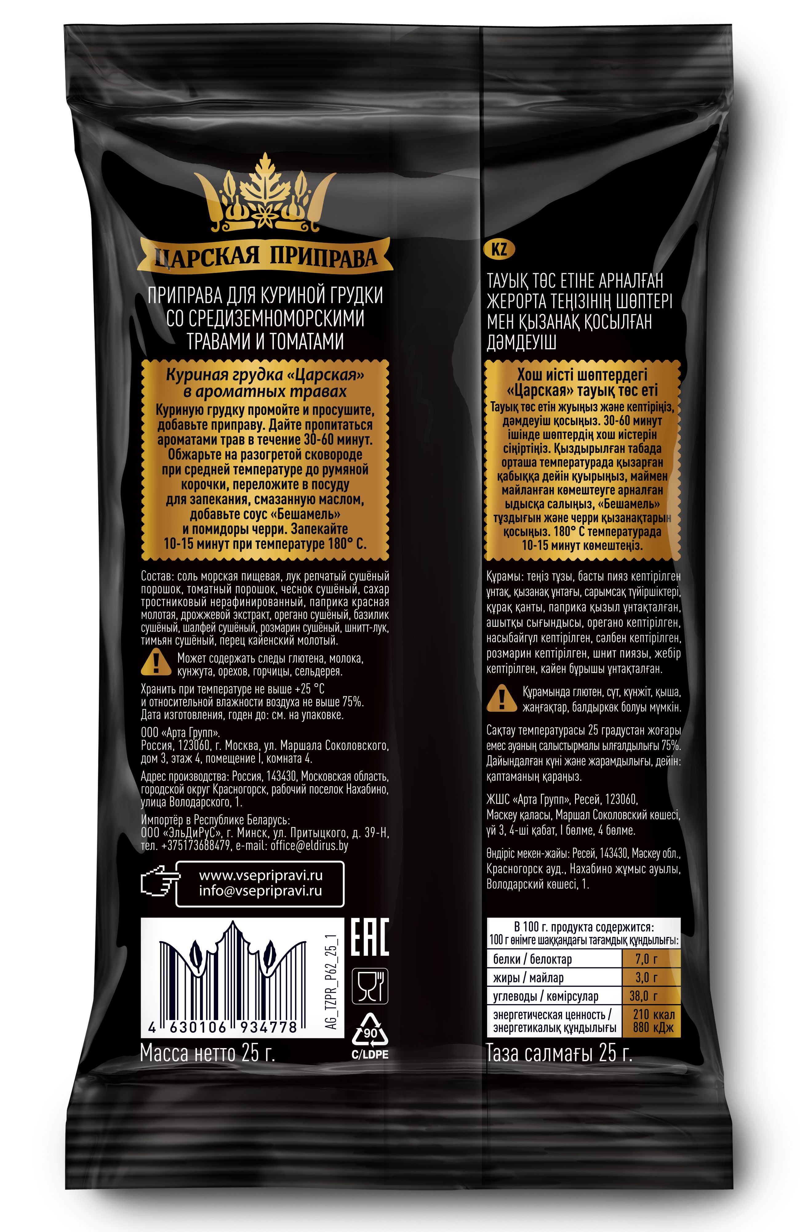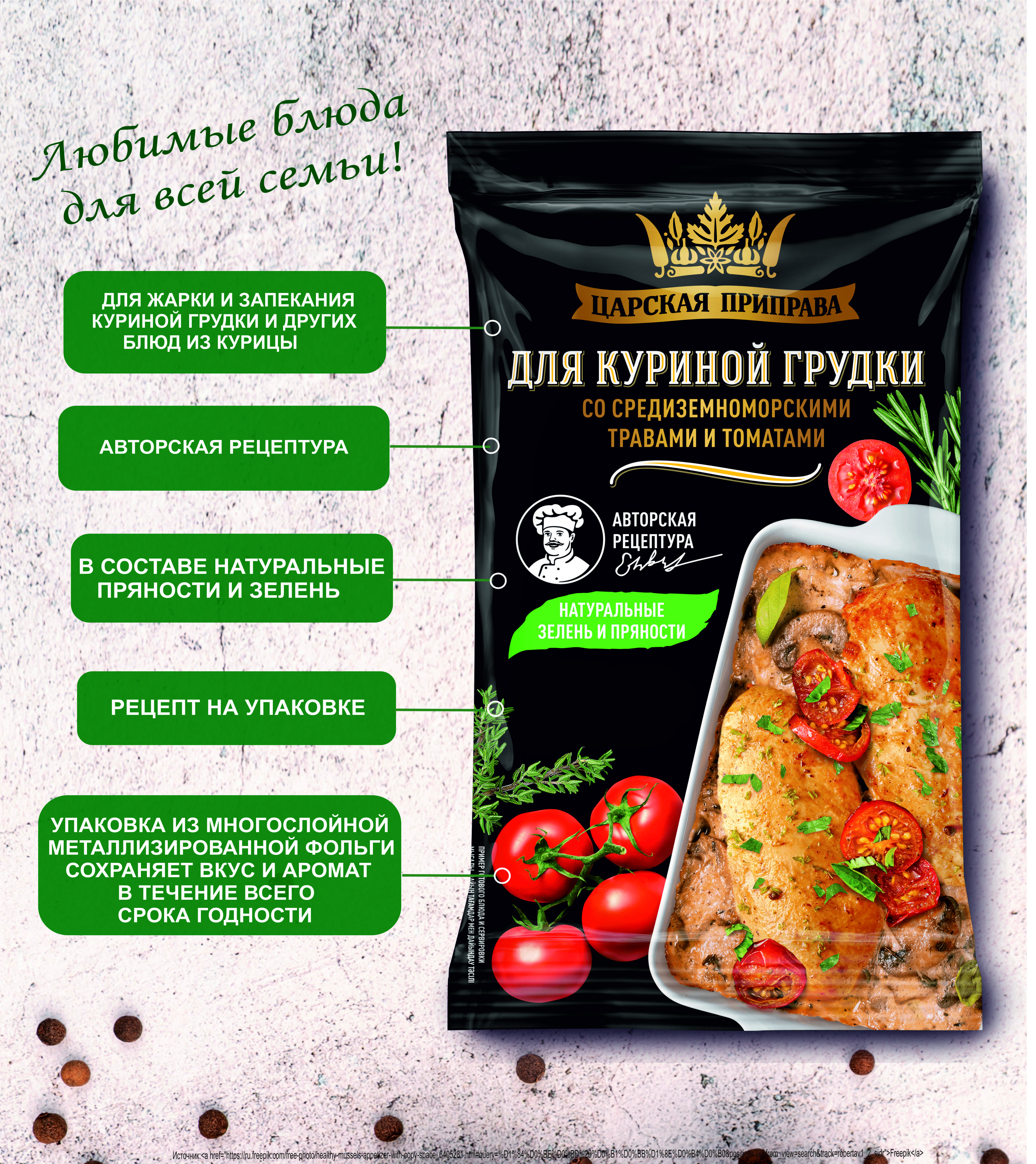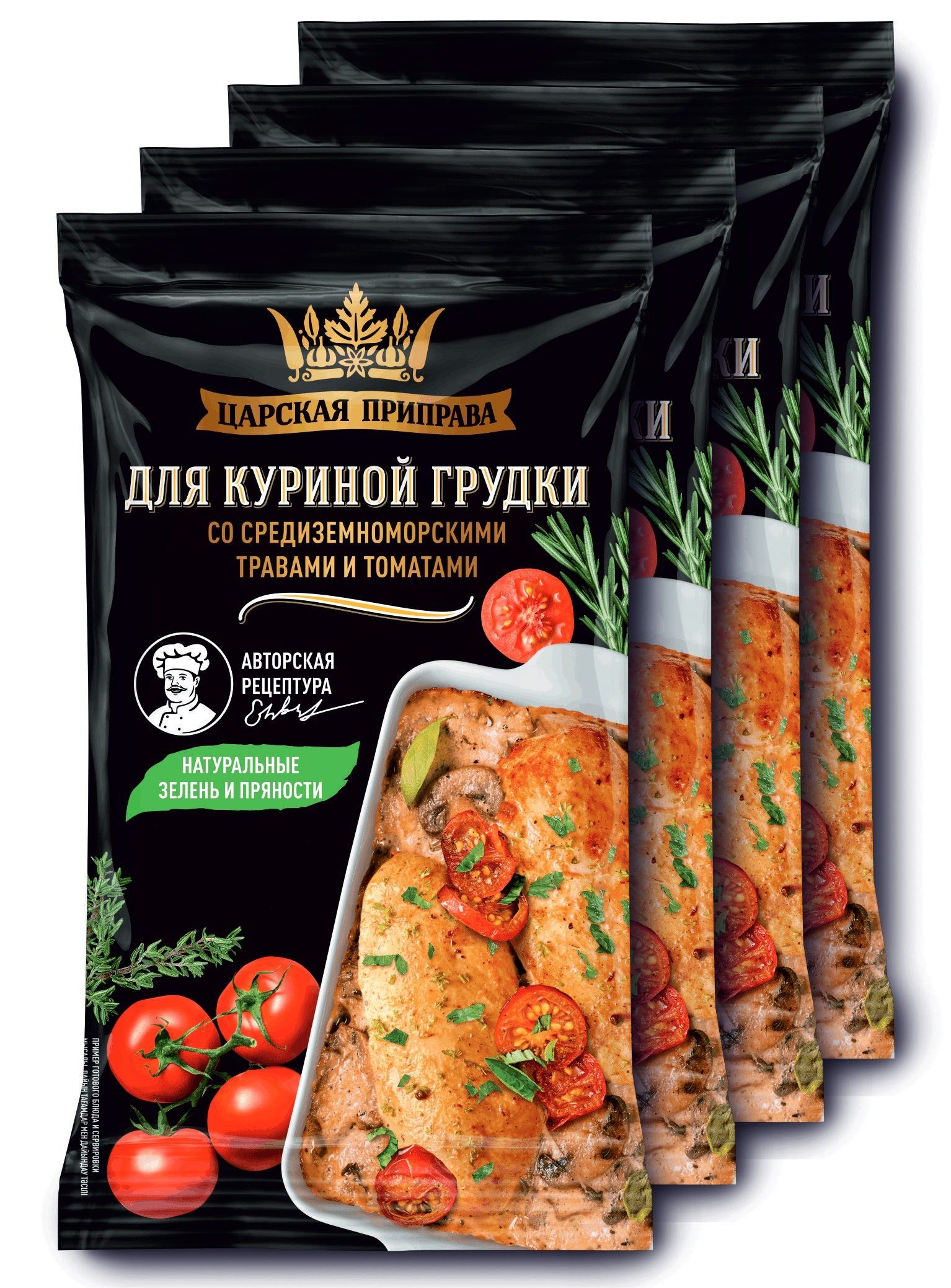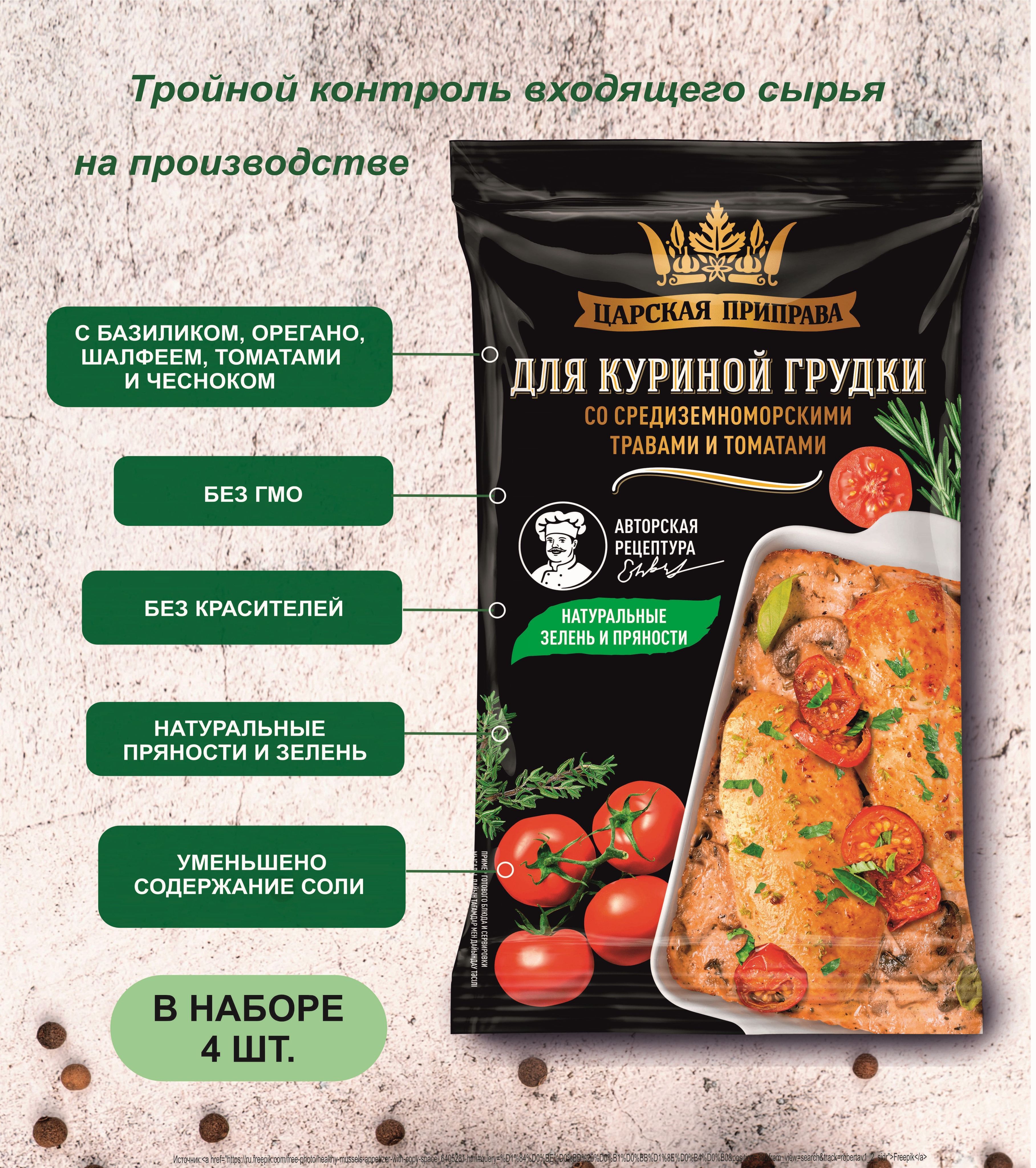 Приправа для куриной грудки со средиземноморскими травами и томатами, Царская приправа 4 пакетика по 25 г.