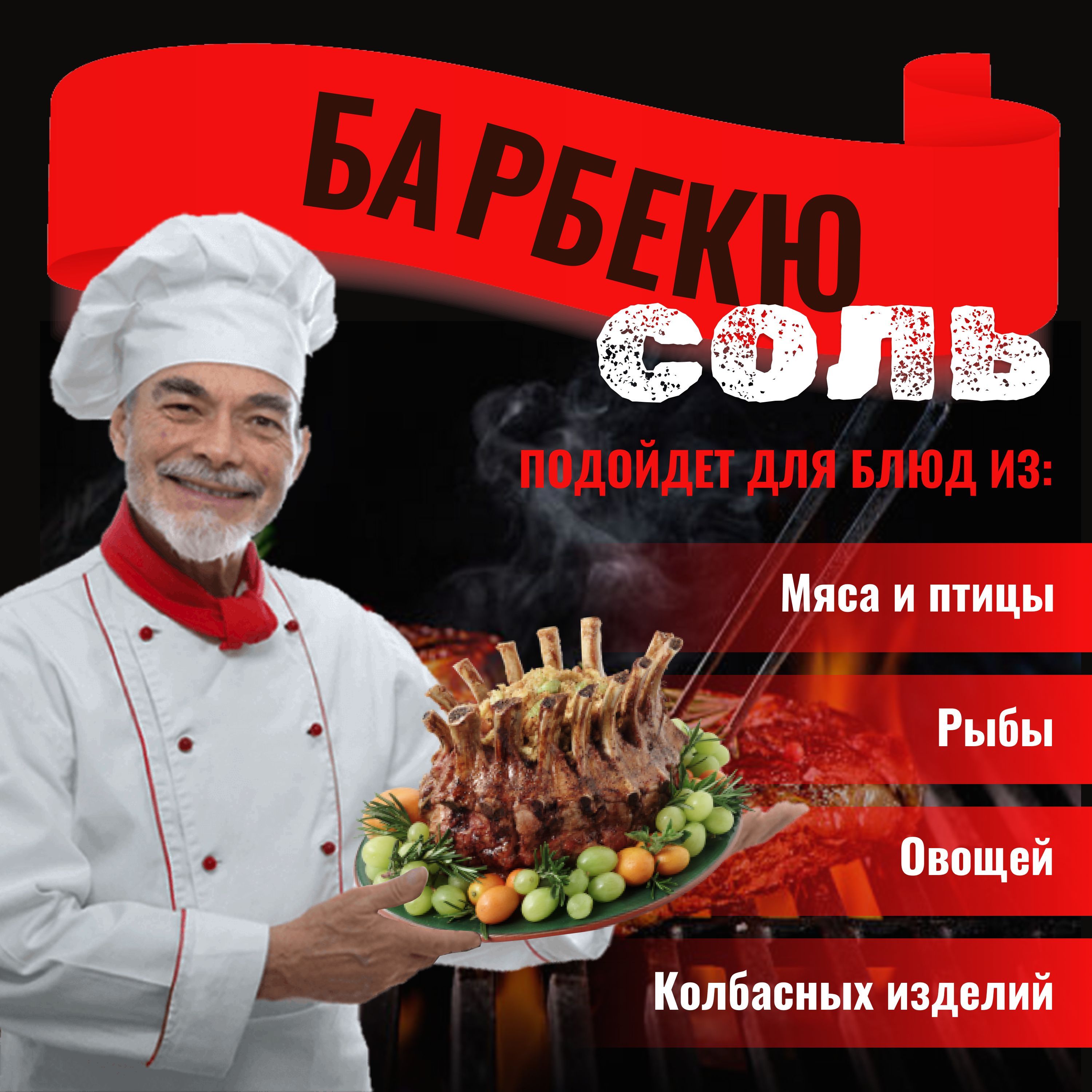 Описание: Барбекю сольBBQ - это яркая смесь специй, приятного красного цвета с копченой паприкой, терпким лаймом, душистым черным перцем и сладким томатом. Без добавления усилителей вкуса и аромата, натуральные ингредиенты. Такая соль со специями используется для сухого и влажного маринования мяса, птицы, рыбы, колбасных изделий для придания им остроты и пряного вкуса. Барбекю приправа для вкуснейшего шашлыка и ароматного стейка ( barbecue ). Обладает пряным и немного острым вкусом. Также подходит для приготовления любого блюда на огне, в духовке. Долгожданный сезон барбекю и шашлыка на открытом огне, точнее над углями начинается с марта и заканчивается только в ноябре, в зависимости от региона нашей большой страны. Вылазки на природу становятся планами на выходные, когда запах костра замер в воздухе, а свежее мясо нежится в пряном маринаде. Многие с удовольствием готовят на открытом огне ароматные шашлыки или барбекю решетка в новогоднюю ночь, для ароматного, гастрономически незабываемого праздничного стола. Электробарбекю позволяет приготовить шашлык, рыбные стейки, птицу или овощи-гриль у вас дома, не выезжая на природу, т.е. сезон шашлыков круглогодичный. Соль Барбекю поможет преобразить любое ваше блюдо на костре или в духовке и придать ему изысканности и дополнительного аромата. С лучшими специями для мяса, сезон шашлыка и барбекю гриль мангал становится настоящим наслаждением. А чтобы ваше блюдо на костре (углях) было ещё вкуснее, выбирайте правильно дерево.