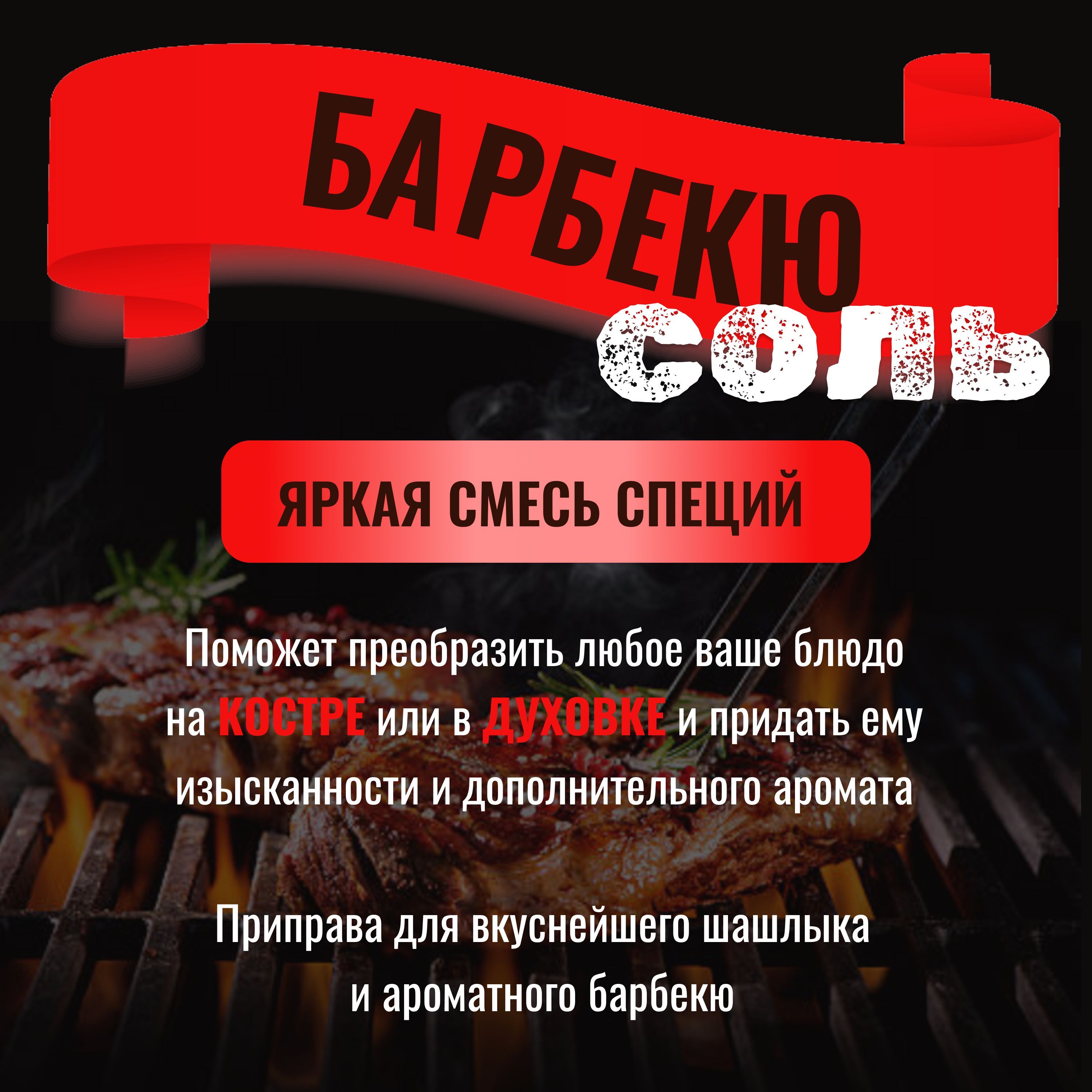 2. Соль Барбекю 100г - подойдет для приготовления шашлыка и овощей на костре, углях, мангале. Также поджарить ароматный стейк или запечь рыбу в духовке;