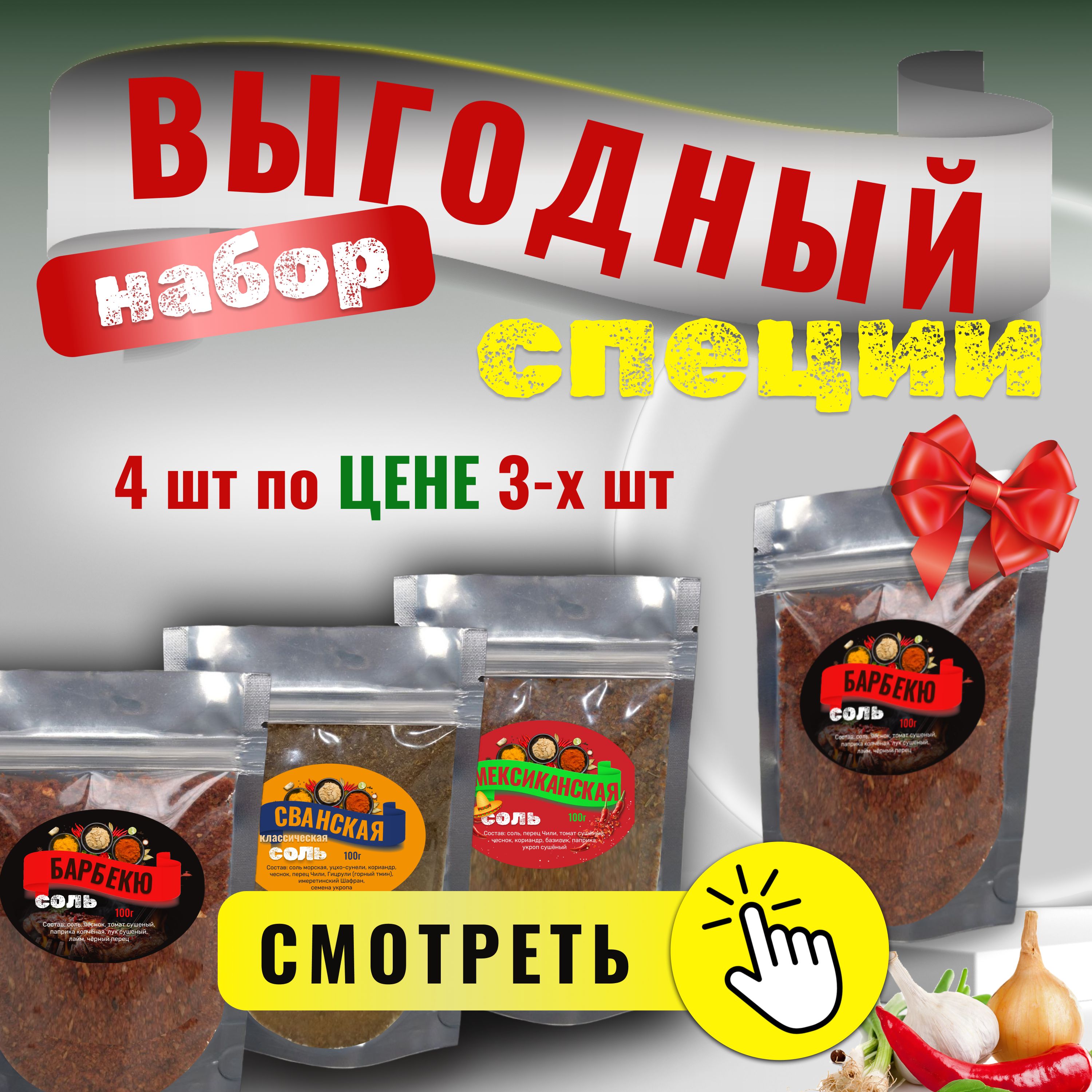 4. Соль Барбекю 100г в подарок БесплатноСмесь пряностей идеально подойдет для овощей, мяса на гриле, а также ваших любимых блюд, если вы захотите им придать больше остроты.