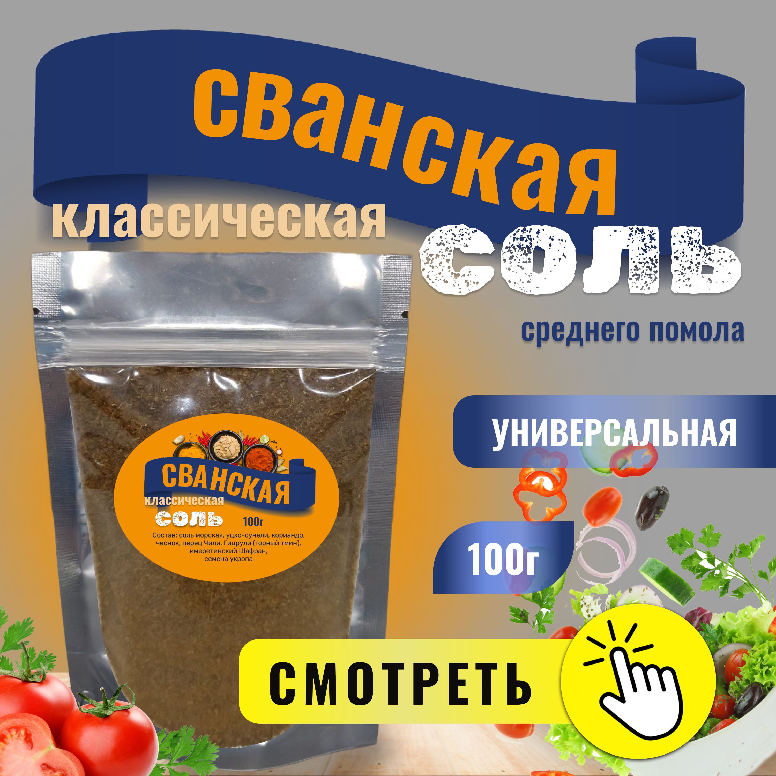 1. Соль Сванская классическая 100г - универсальная грузинская приправа с морской солью пищевой, которая подойдет абсолютно ко всем первым, вторым блюдам, мясу, рыбе, птице;