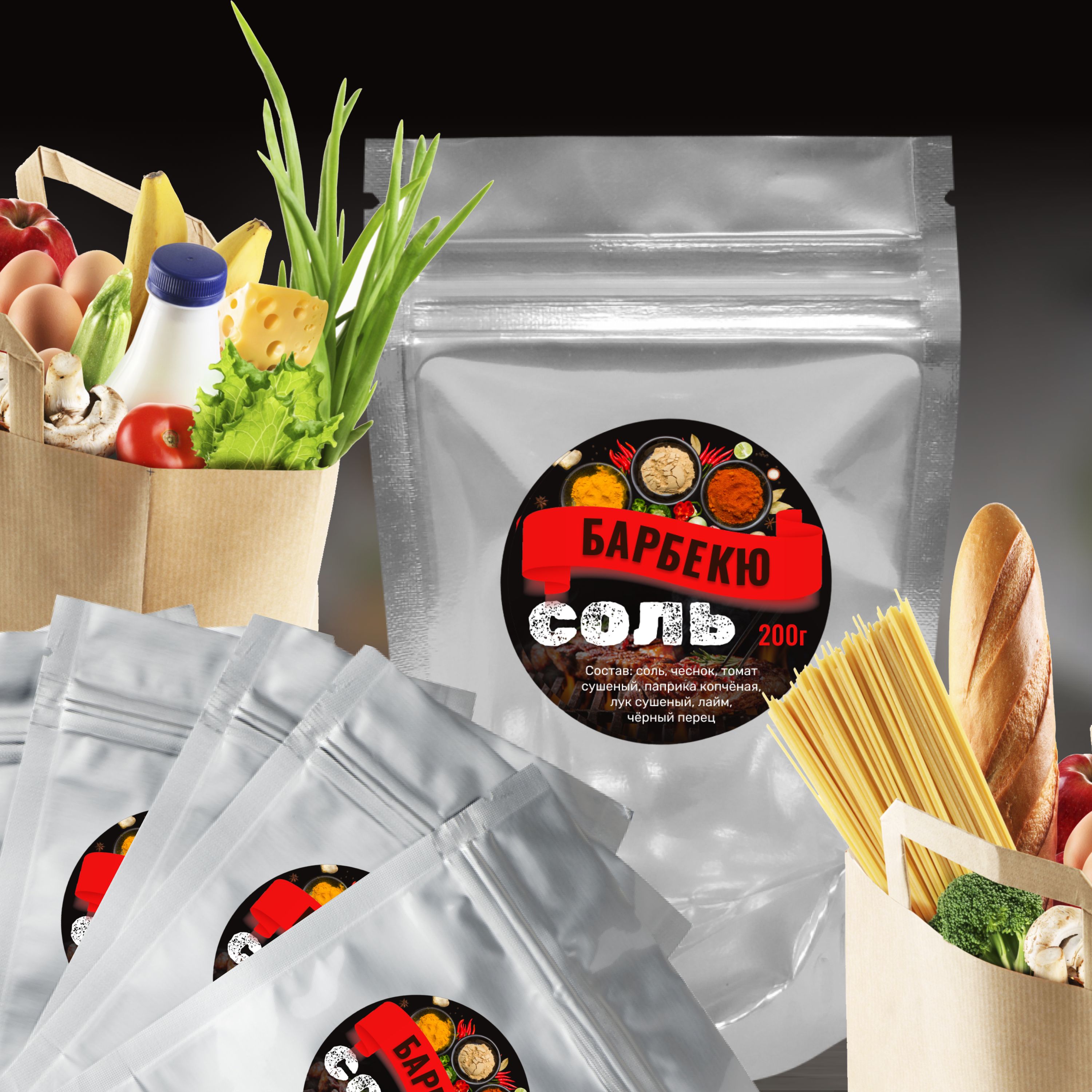Польза и вред Специи для барбекю щедры на антиоксиданты, они снижают уровень холестерина в крови, обладают согревающим действием. Барбекю соль не только разнообразит вкус еды, но и принесёт пользу нашему организму. Злоупотреблять специями не стоит людям с проблемным ЖКТ. Нельзя использовать такие добавки и людям с пищевой аллергией. Используйте лучшие качества этой ароматной приправы для шашлыка. Сделайте блюда яркими и неповторимымиГибкая герметичная упаковкаСоль со специями мы поместили в удобную гибкую герметичную упаковку. Гибкая упаковка имеет неоспоримые преимущества - не пропускает пыль, посторонние запахи, устойчива к влаге, препятствует образованию болезнетворных микроорганизмов, занимает маленькое пространство на вашей кухне. Ею удобно пользоваться, во время приготовления блюд, а также удобно брать с собой на пикник или в поездкуНабор из 3-х видов вкусных солей
