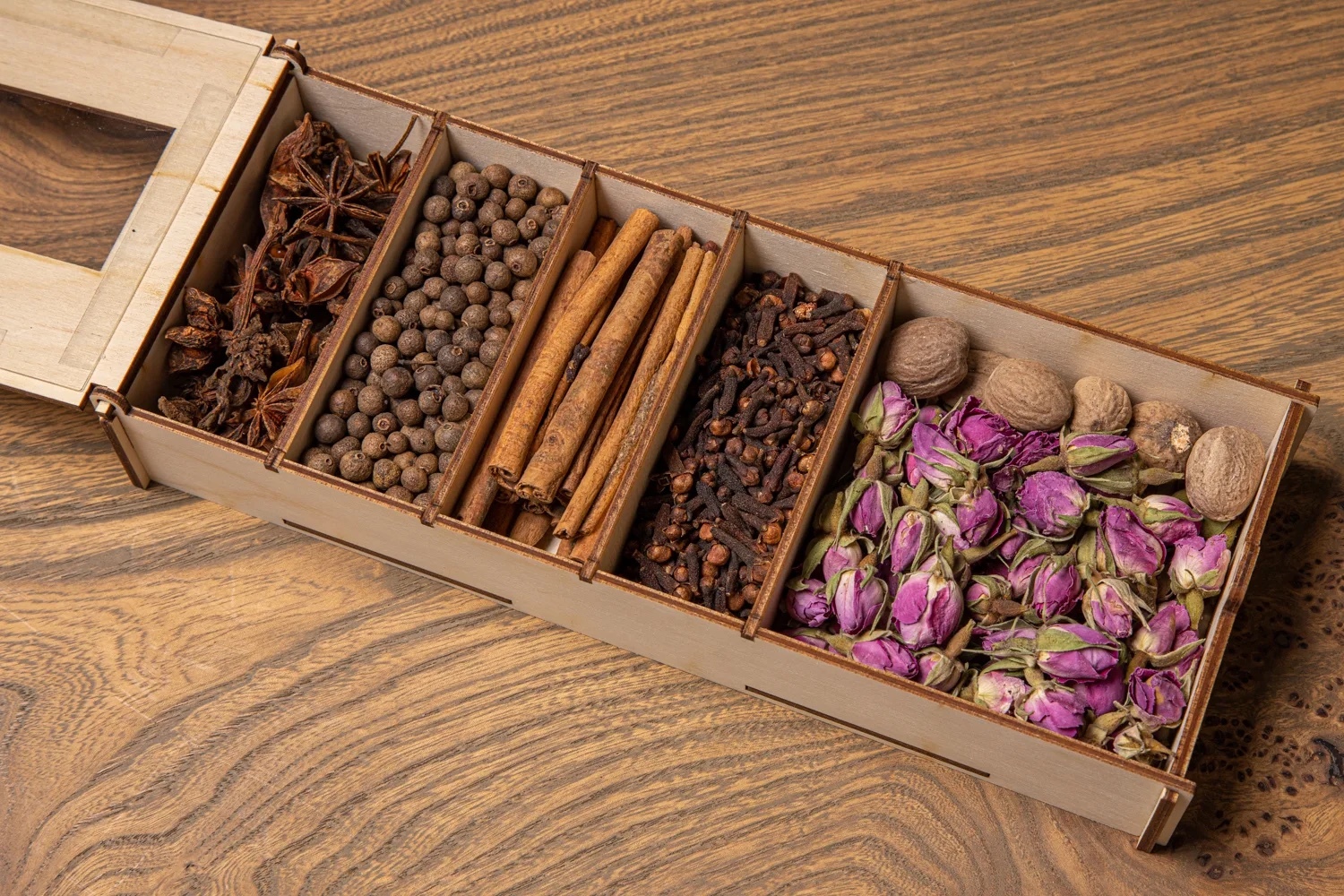 корица, имбирь, гвоздика, кардамон, изюм, цедра апельсиновая, бадьян.