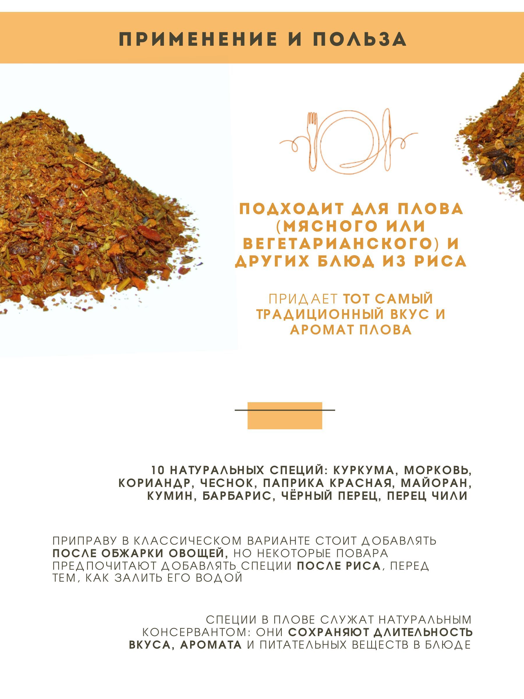 Назначение приправы: Для плова, Для мясных блюд, Для овощей, Для птицы, Для риса, макарон и пиццы