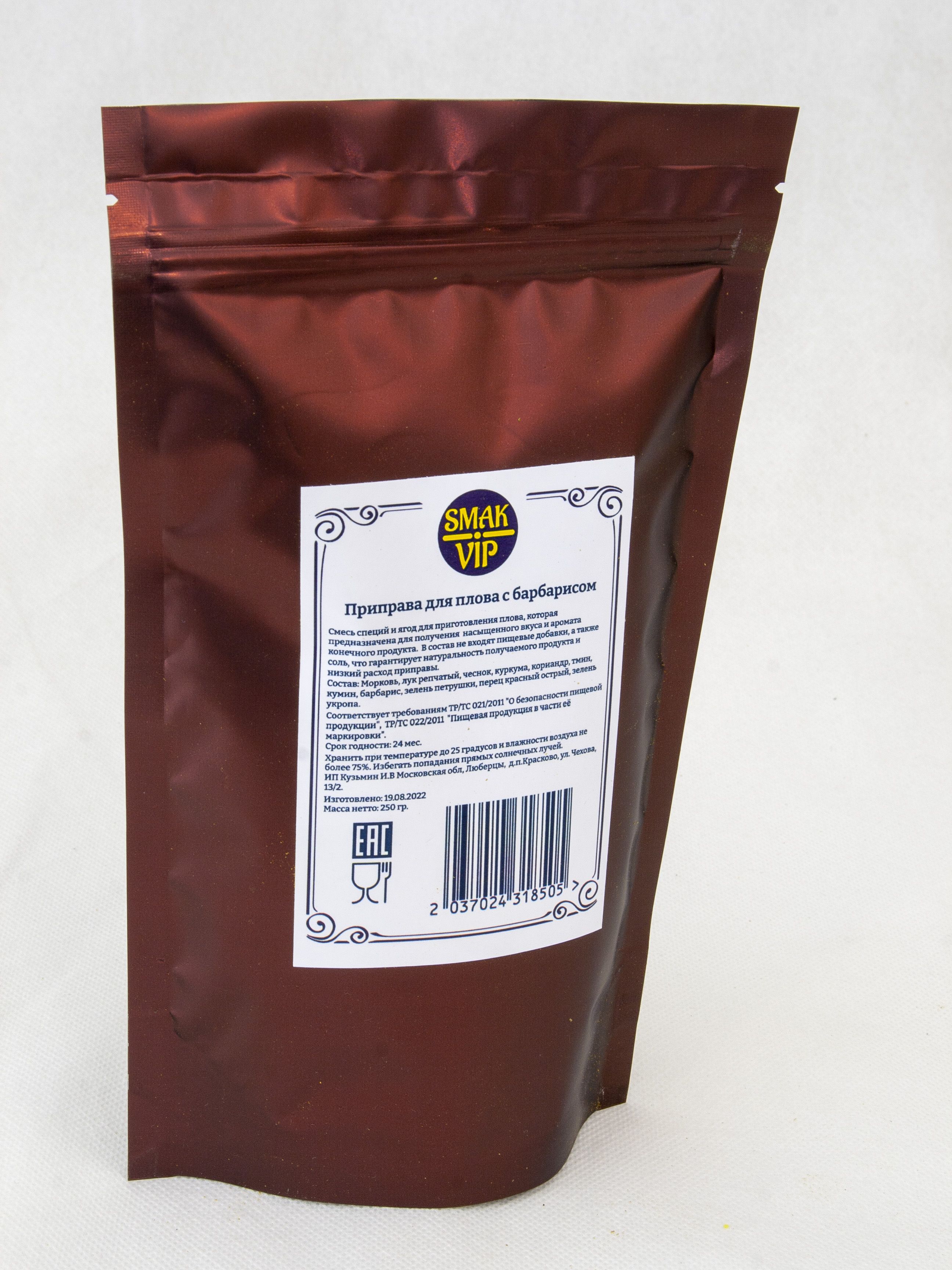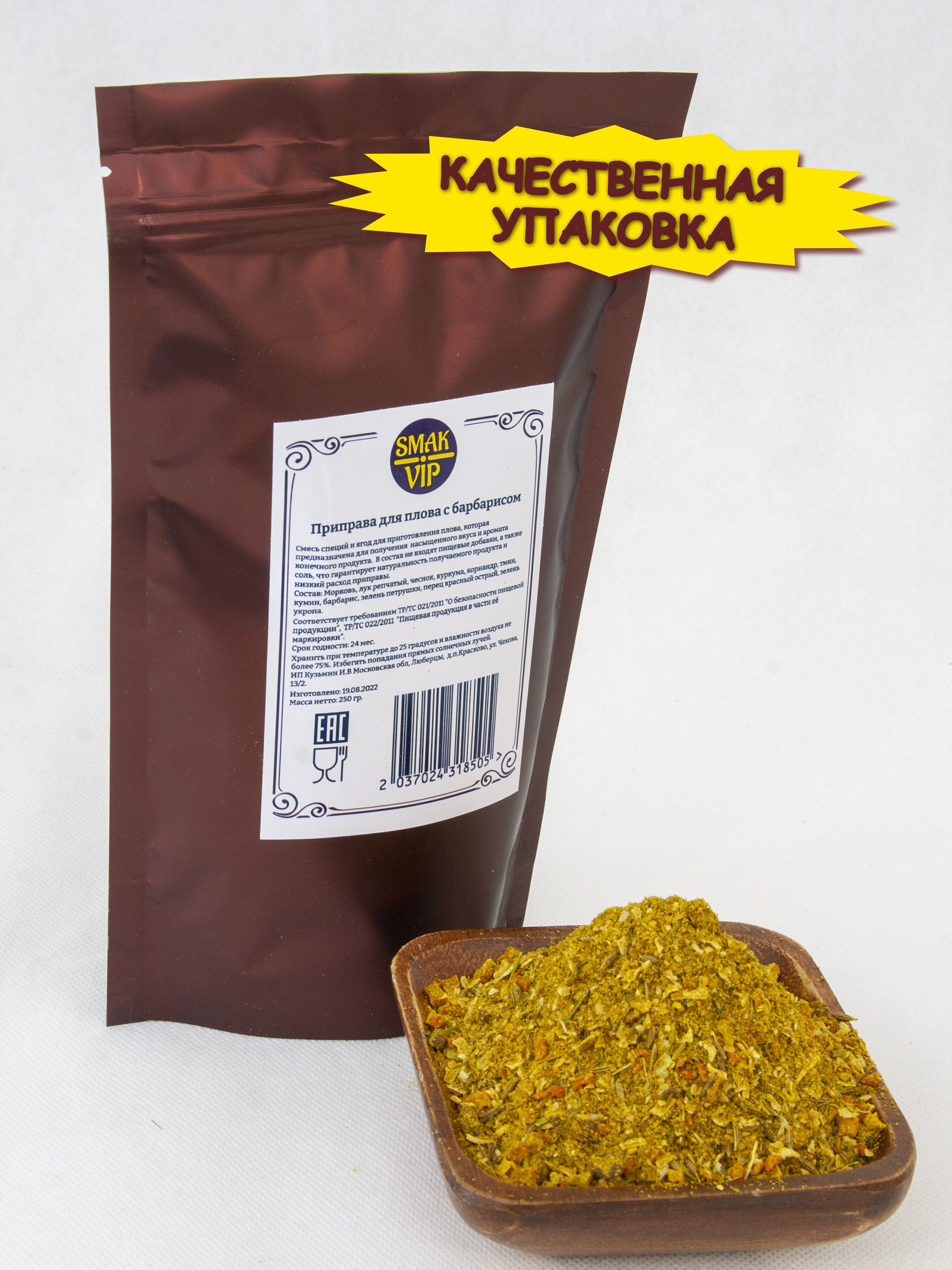 Описание: Что может сделать ваш обед незабываемым? Конечно же приправа для плова с барбарисом от SMAK_VIP. Ароматные специи из кумина, барбариса, зелени петрушки, перца красного острого, зелени укропа, моркови, лука репчатого, чеснока, куркумы, кориандра, тмина. Сам плов станет ярче с таким интересным набором специй, но не стоит забывать про его варианты приготовления: индейка, говядина, свинина, баранина, курица,   сушеный измельчённый рис. Универсальные продукты, которые можно приобрести в любой бакалее. Но у нас гораздо интереснее – в скором времени появятся скидки и акции на эту секретную смесь для любой хозяйки. Без содержания соли, химии, в том числе и глуматата натрия, абсолютно безопасный состав для любого организма. Преимущество данного набора в прочной и удобной упаковке. Самое лучшее блюдо получится у каждого, кто выберет нашу натуральную продукцию!