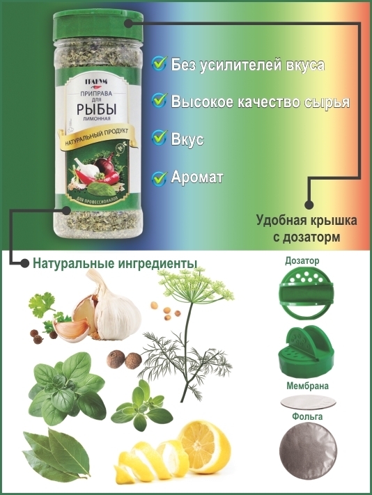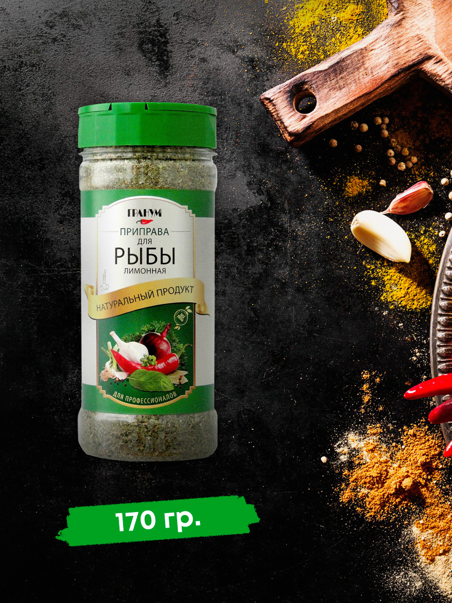 Приправа для рыбы лимонная "ГРАНУМ" 170 г / БЕЗ СОЛИ/ с дозатором